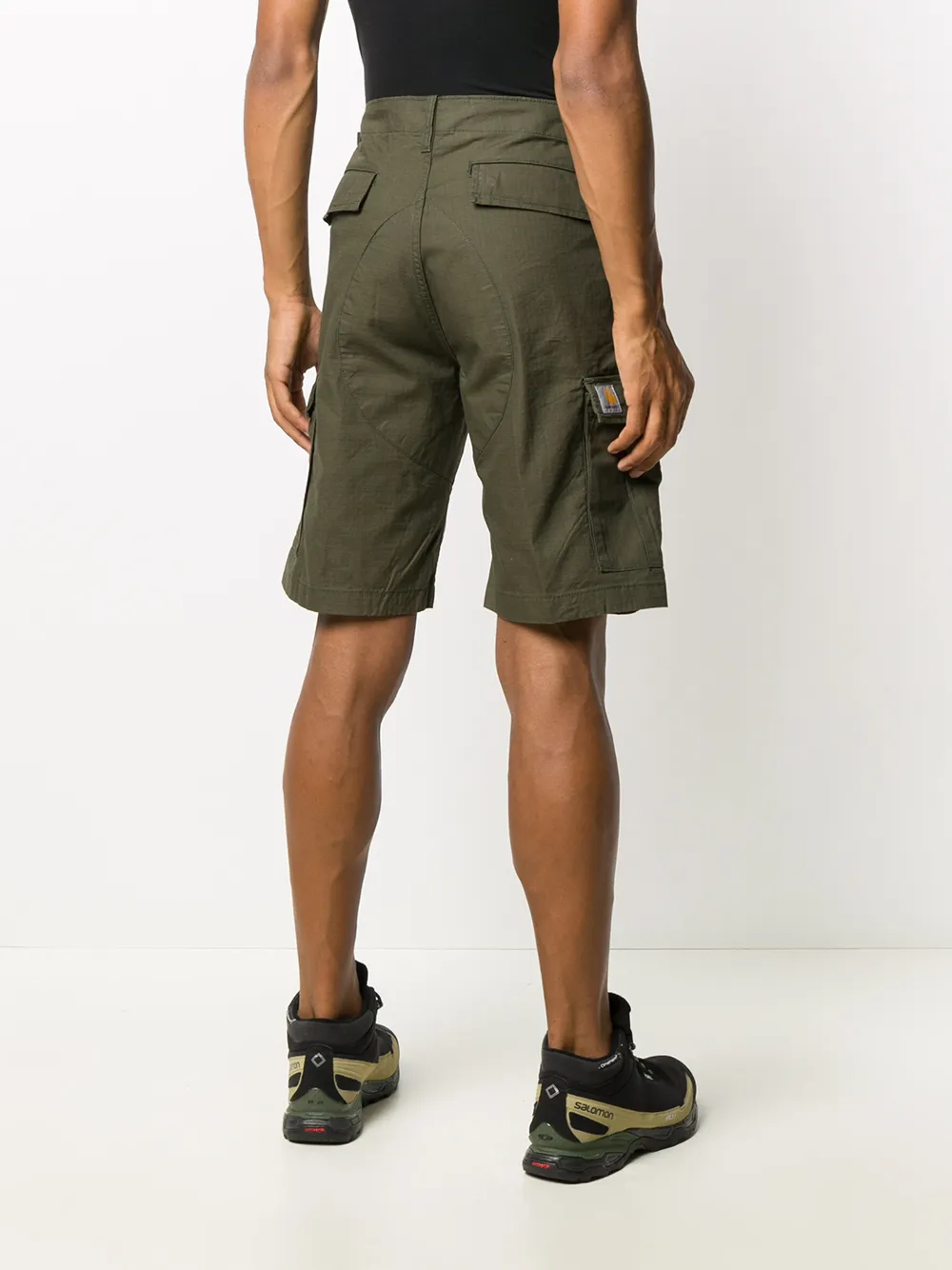 Шорты с нашивкой-логотипом от Carhartt WIP. Пояс с петлями для ремня, ширинка на молнии с пуговицей, боковые карманы и длина по колено. Цвет: зеленый.