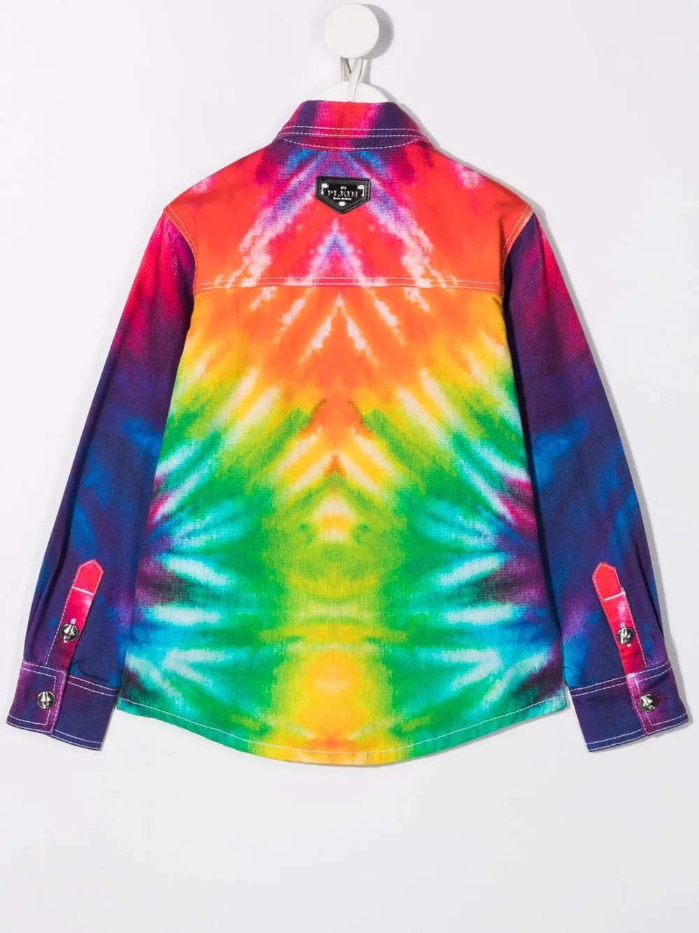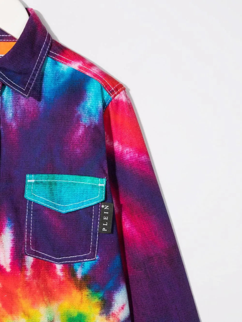 Джинсовая рубашка с принтом тай-дай Philipp Plein Junior, зеленый