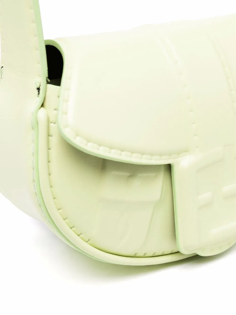 Тональная строчка, гравировка, основное отделение, откидной клапан и ремень на плечо.