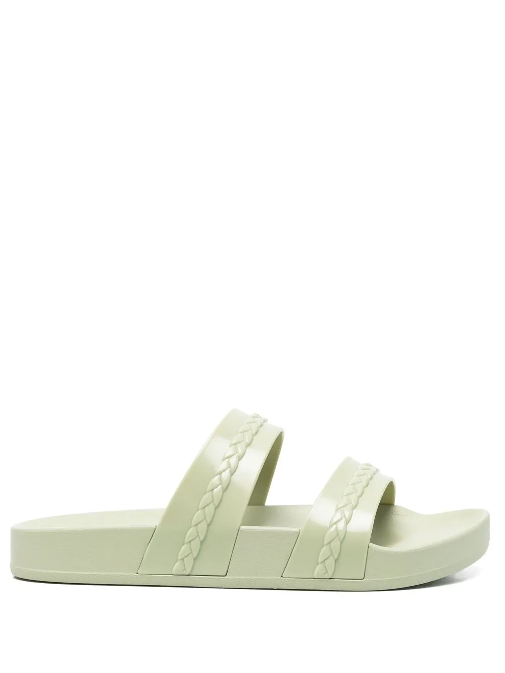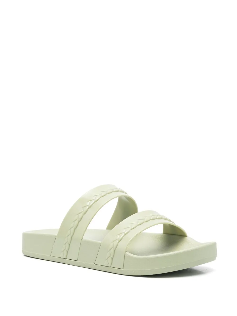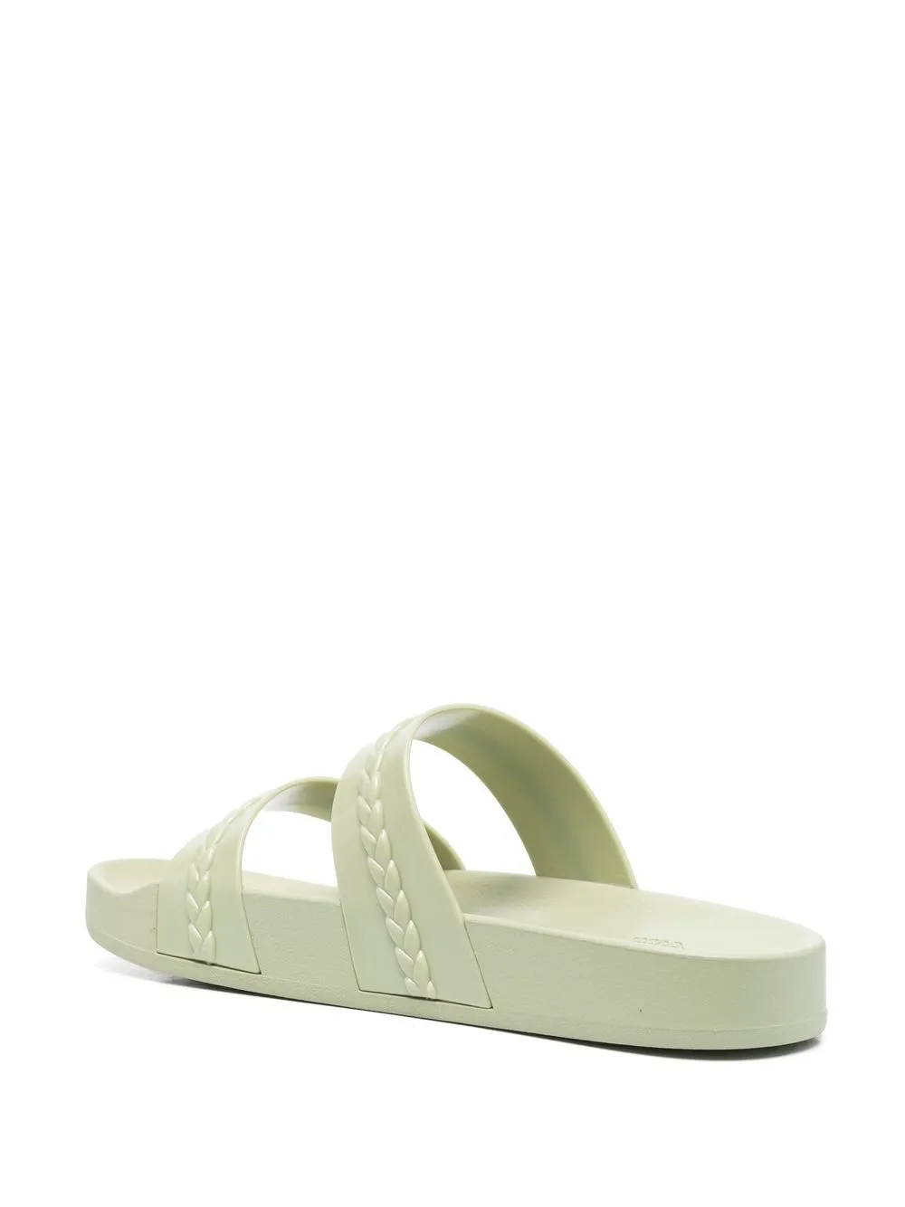 Мятно-зеленый, браслет в два оборота, открытый носок, модель без застежки, стелька с логотипом и массивная резиновая подошва. Этот бренд получил хорошую оценку, потому что следит за соблюдением достойных условий труда на всех этапах цепочки поставок..