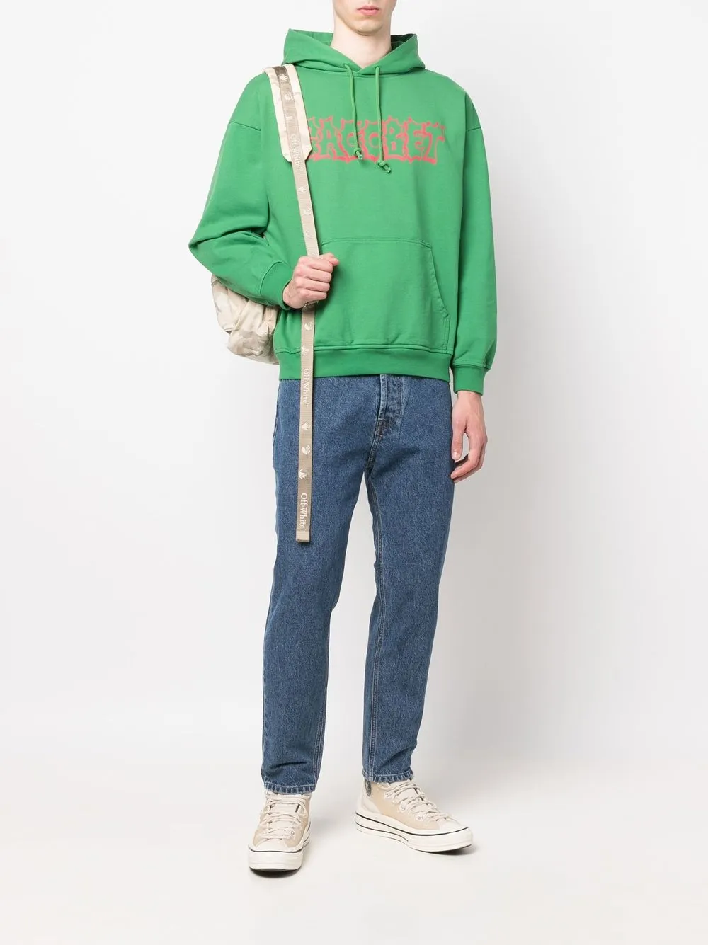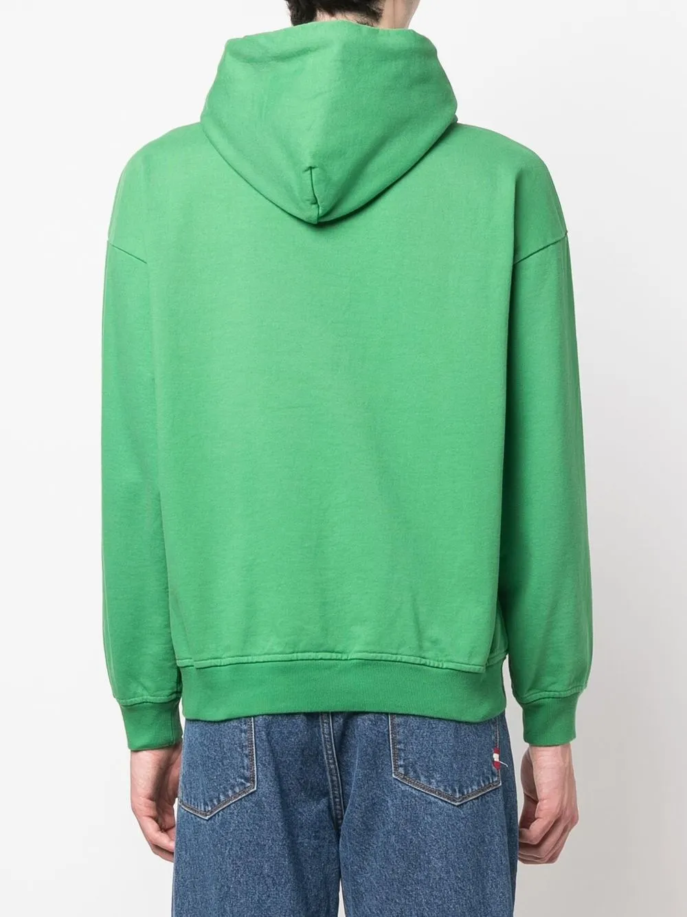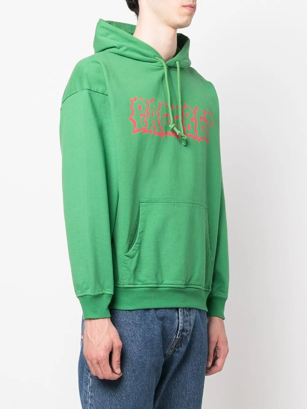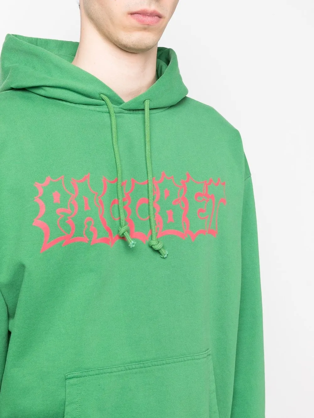 Красный, хлопок, логотип спереди, затягивающийся на шнурок капюшон, карман-муфта, края в рубчик, приспущенные плечи, длинные рукава и прямой подол.