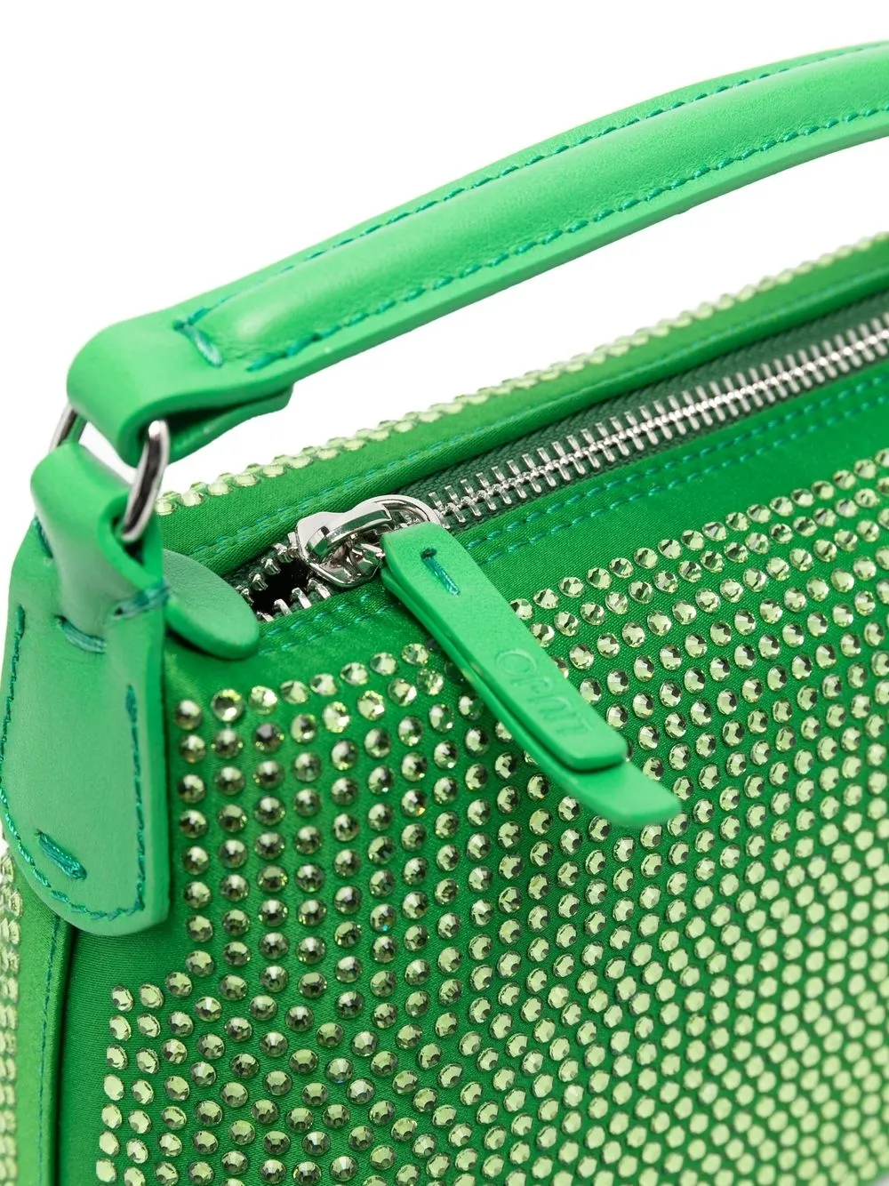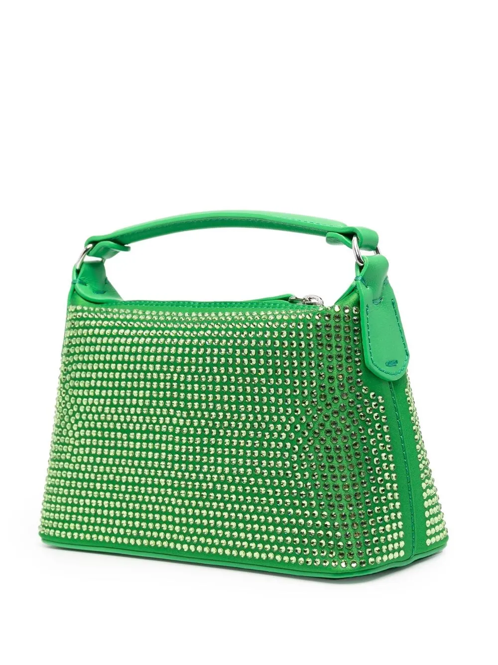 Расцветка Emerald Green, Кожа, украшения из горного хрусталя, застежка на молнии сверху, съемный регулируемый ремень на плечо, верхняя ручка, основное отделение и внутренний прорезной карман.