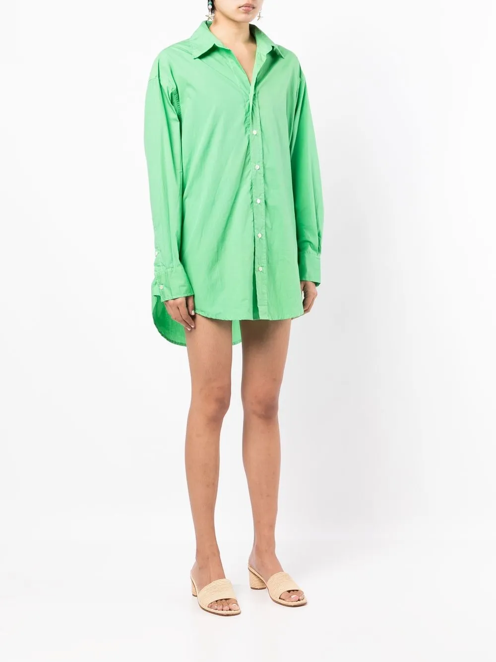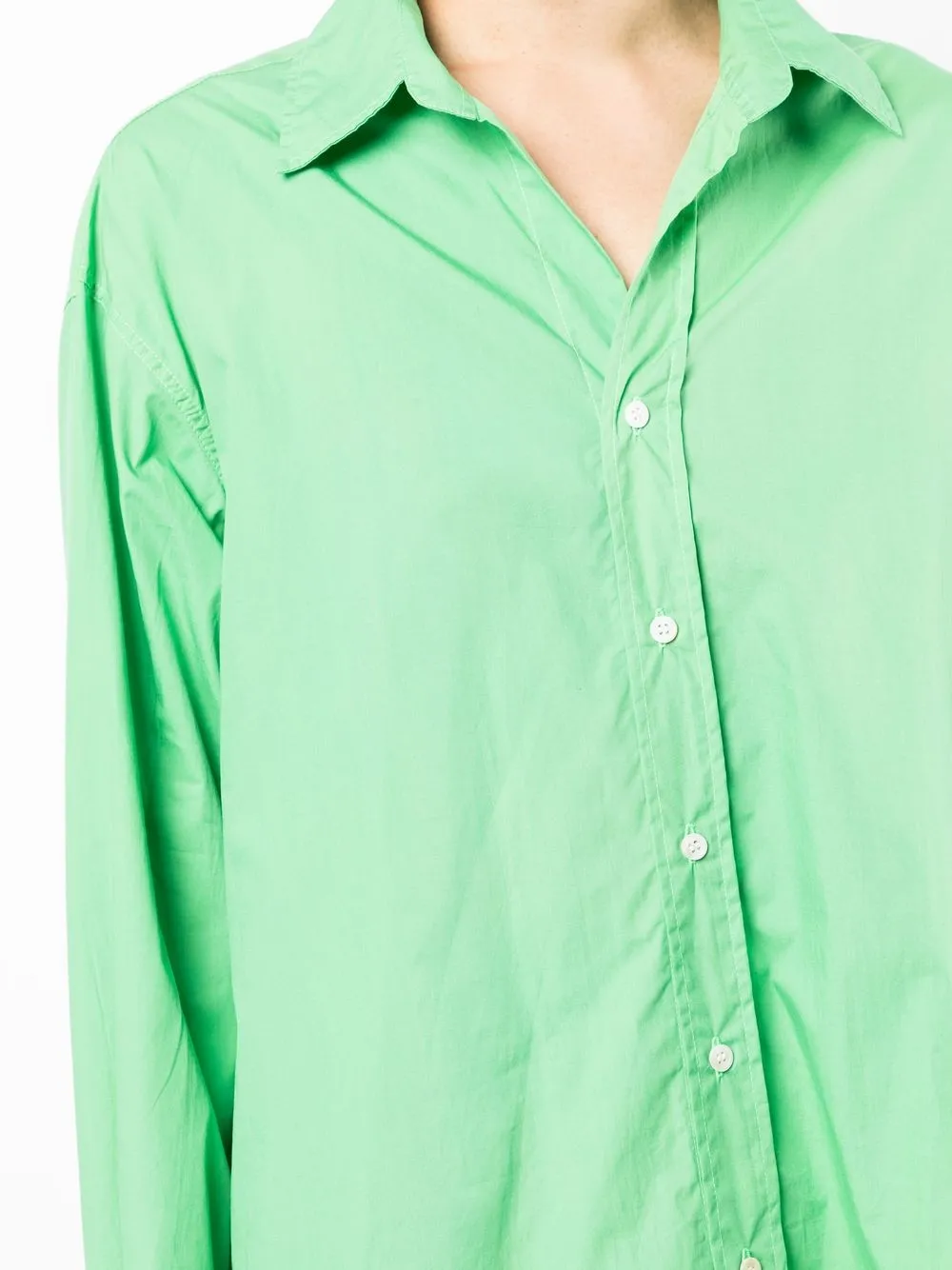 Ярко-зеленый, хлопок, классический воротник, застежка на пуговицах спереди, длинные рукава, манжеты на пуговицах и закругленный подол. POSITIVELY CONSCIOUS: Мы объединились с агентством Good On You, которое оценивает бренды по степени их влияния на животных, людей, и планету в целом. Этот бренд получил хорошую оценку, потому что следит за соблюдением достойных условий труда на всех этапах цепочки поставок.
