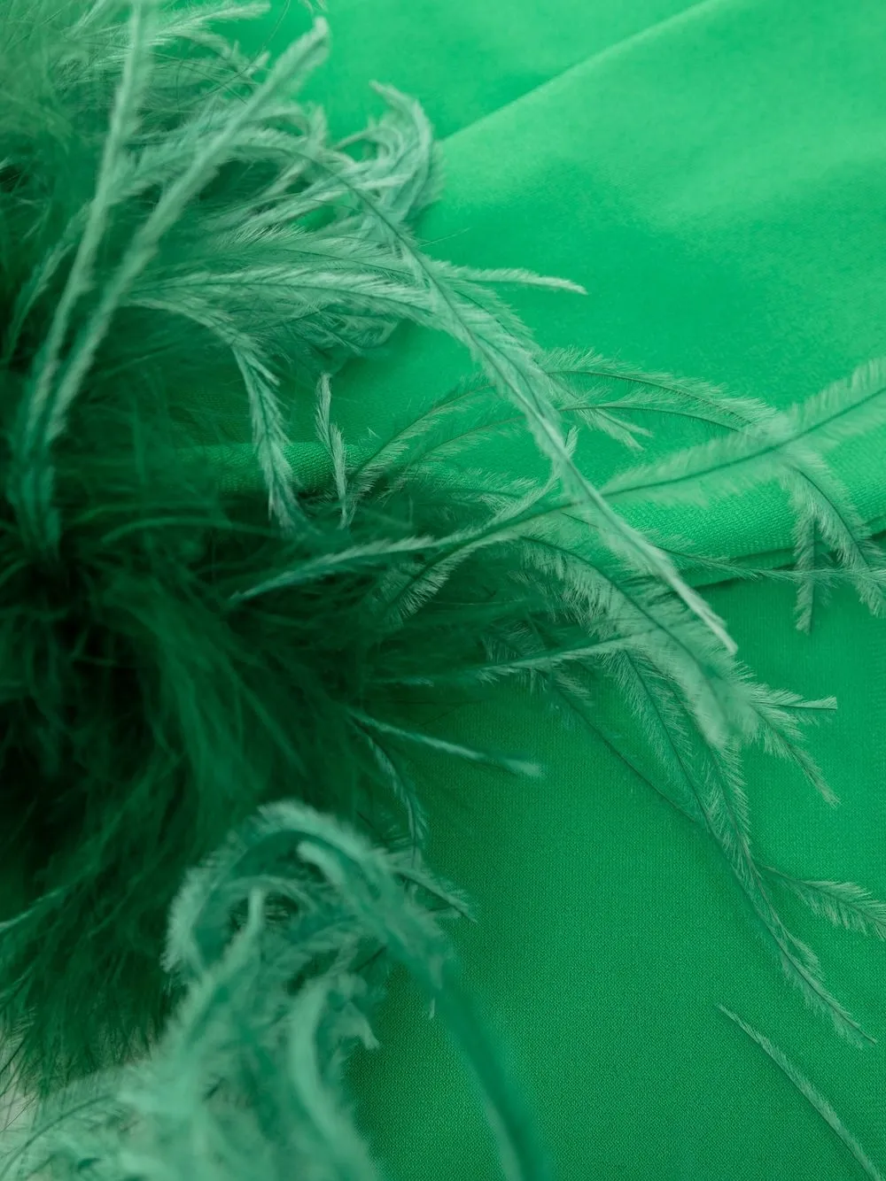 Расцветка Emerald Green, страусиные перья, отделка перьями, длинная модель и модель без застежки.