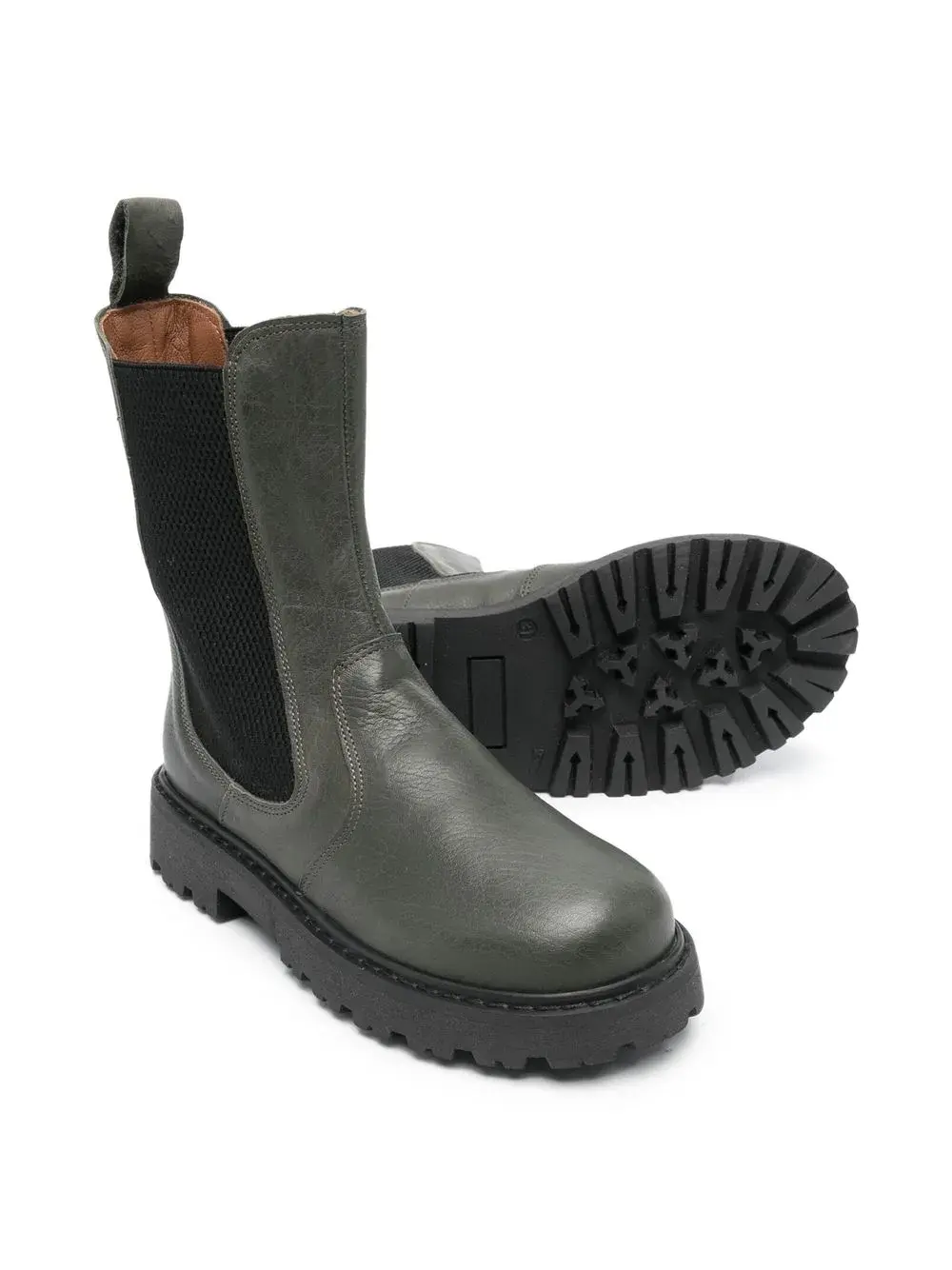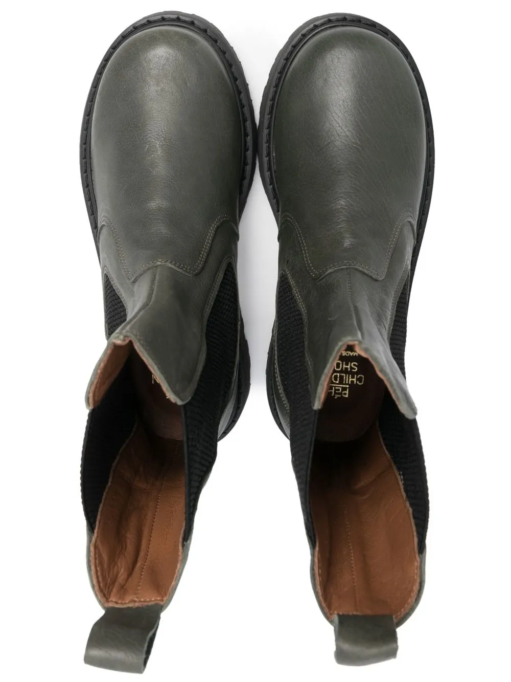 Телячья кожа, модель без застежки, высота по щиколотку, закругленный носок, эластичные боковые вставки, кожаная стелька с логотипом и плоская резиновая подошва.