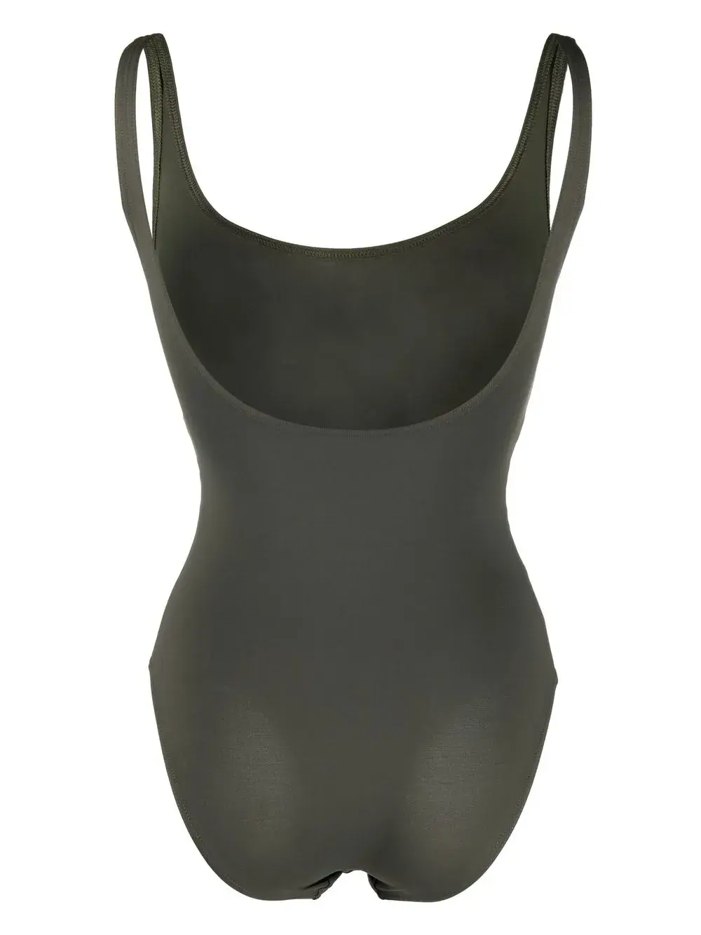 Хаки, эластичный материал, лиф со вставками, U-образный вырез, низкий вырез на спине, тонкие ремешки и среднее покрытие. Пожалуйста, примеряйте купальники и пляжные шорты только поверх собственного белья.
