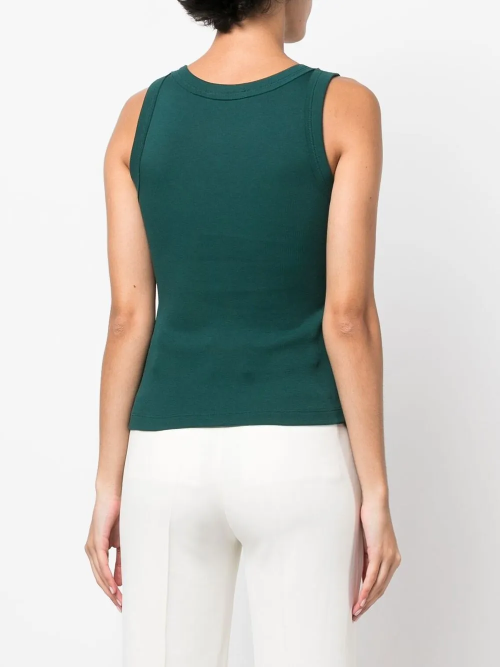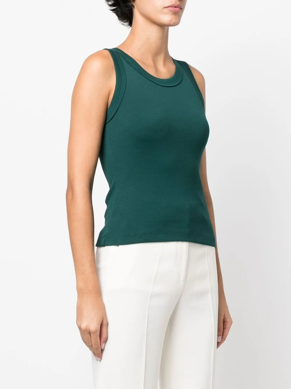 Темно-зеленый, органический хлопок, круглый вырез, без рукавов и прямой подол. Ответственный выбор: