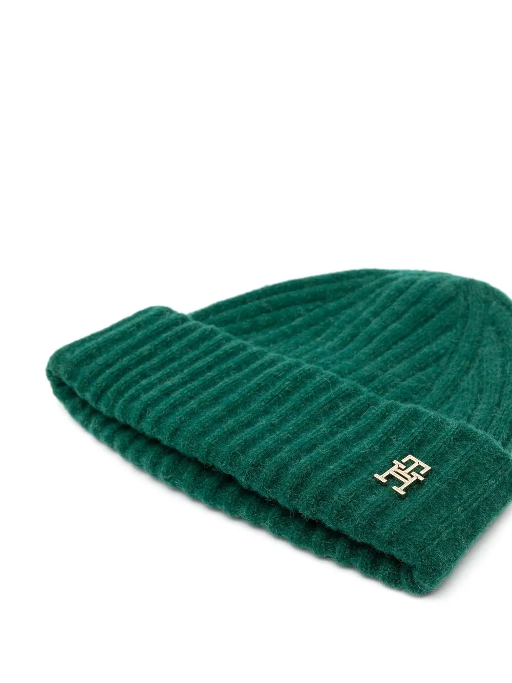 Шапка бини в рубчик с логотипом Tommy Hilfiger, зеленый