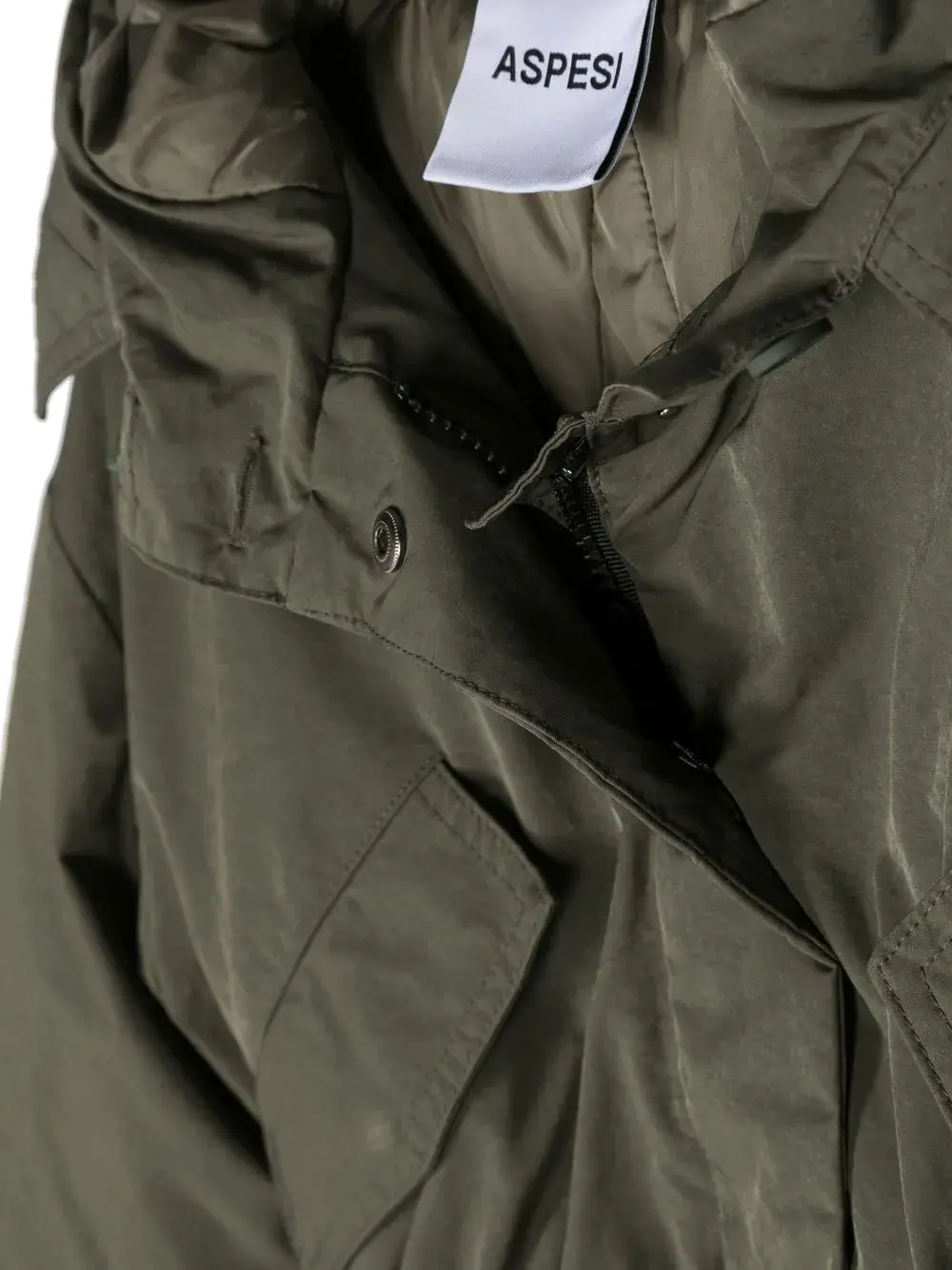 Плащ с капюшоном и карманами Aspesi Kids, зеленый