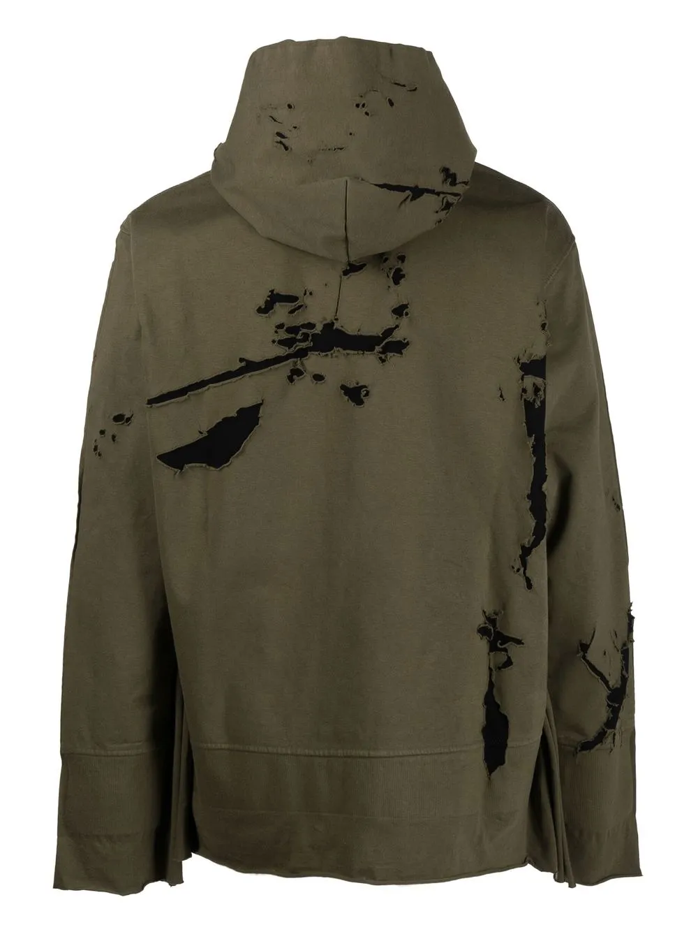 Оливковый, хлопок, эффект разбрызганной краски, принт с логотипом на груди, затягивающийся на шнурок капюшон, необработанные края и длинные рукава.