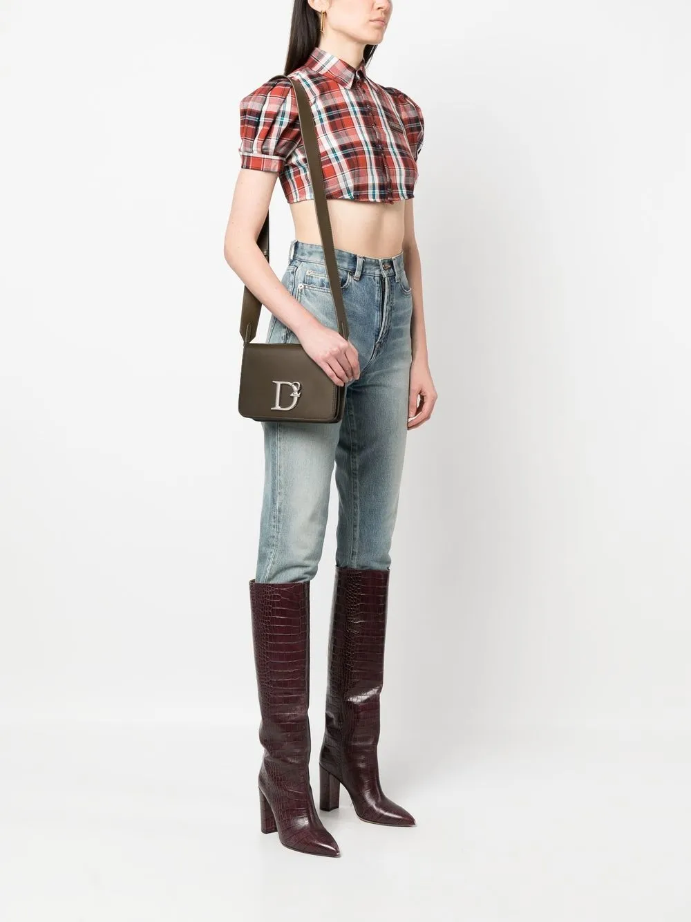 Кожаная сумка через плечо с логотипом DSQUARED2, зеленый
