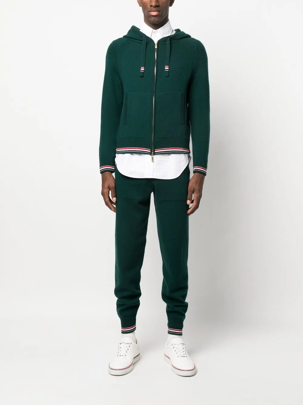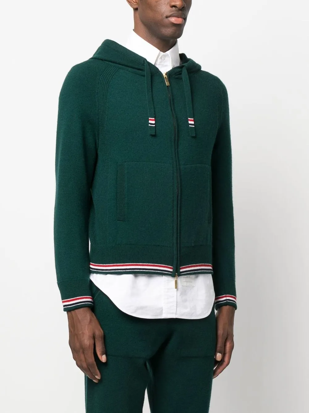 Кашемировое худи на молнии THOM BROWNE, зеленый