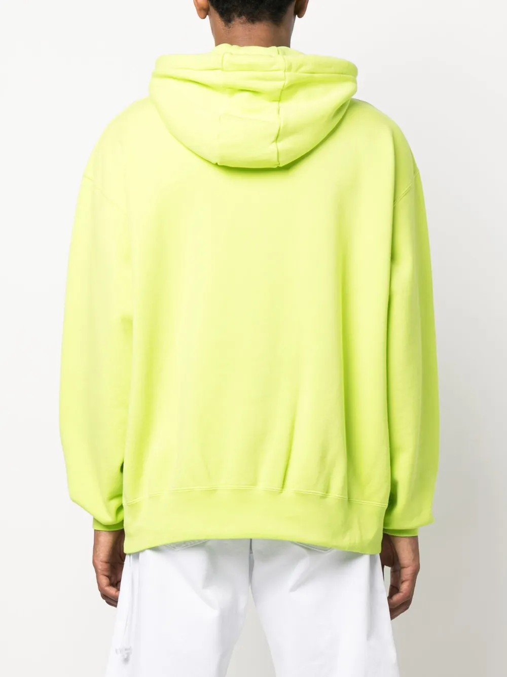 Неоново-зеленый, хлопок, принт с надписью, затягивающийся на шнурок капюшон и карман-муфта.