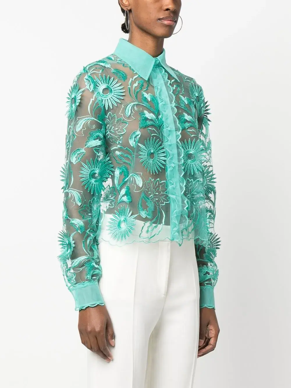 Рубашка с вышивкой Alberta Ferretti, зеленый 41 811₽