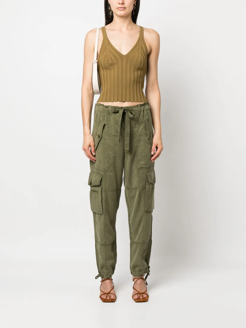 Хаки, смесовый лиоцелл, манжеты с кулиской, петли для ремня, кулиска на талии, зауженный крой, несколько накладных карманов и два прорезных кармана сзади. Этот товар как минимум на 50% состоит из материалов, которые признаны более безопасными для окружающей среды, и/или произведены с использованием методов, которые помогают сократить потребление воды и химических веществ. Узнать больше о том, какие товары получают отметку «Ответственный выбор», можно здесь.