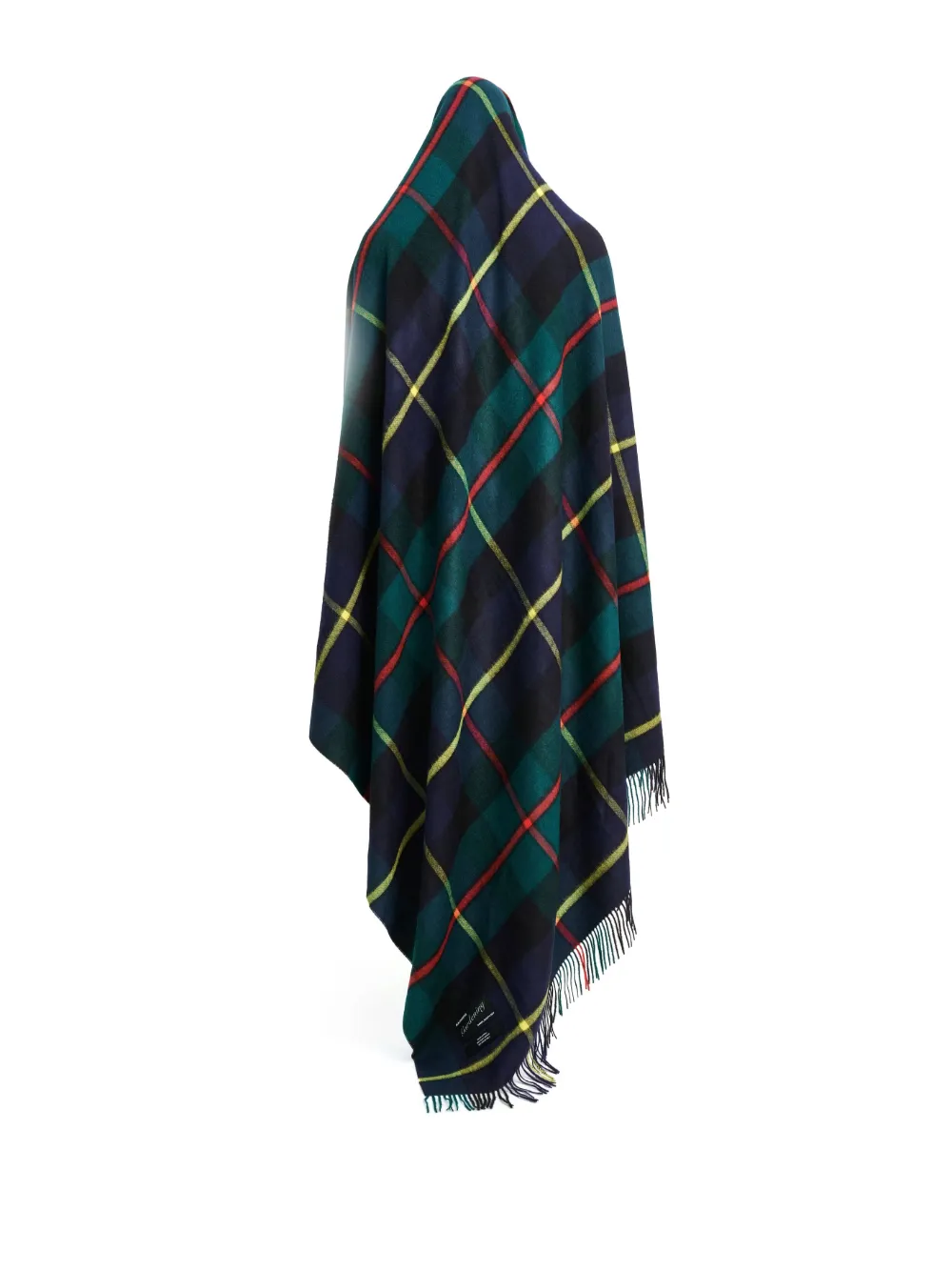 Темно-зеленый, разноцветный, шерсть альпака, прямоугольная форма, нашивка с логотипом спереди и необработанные края.