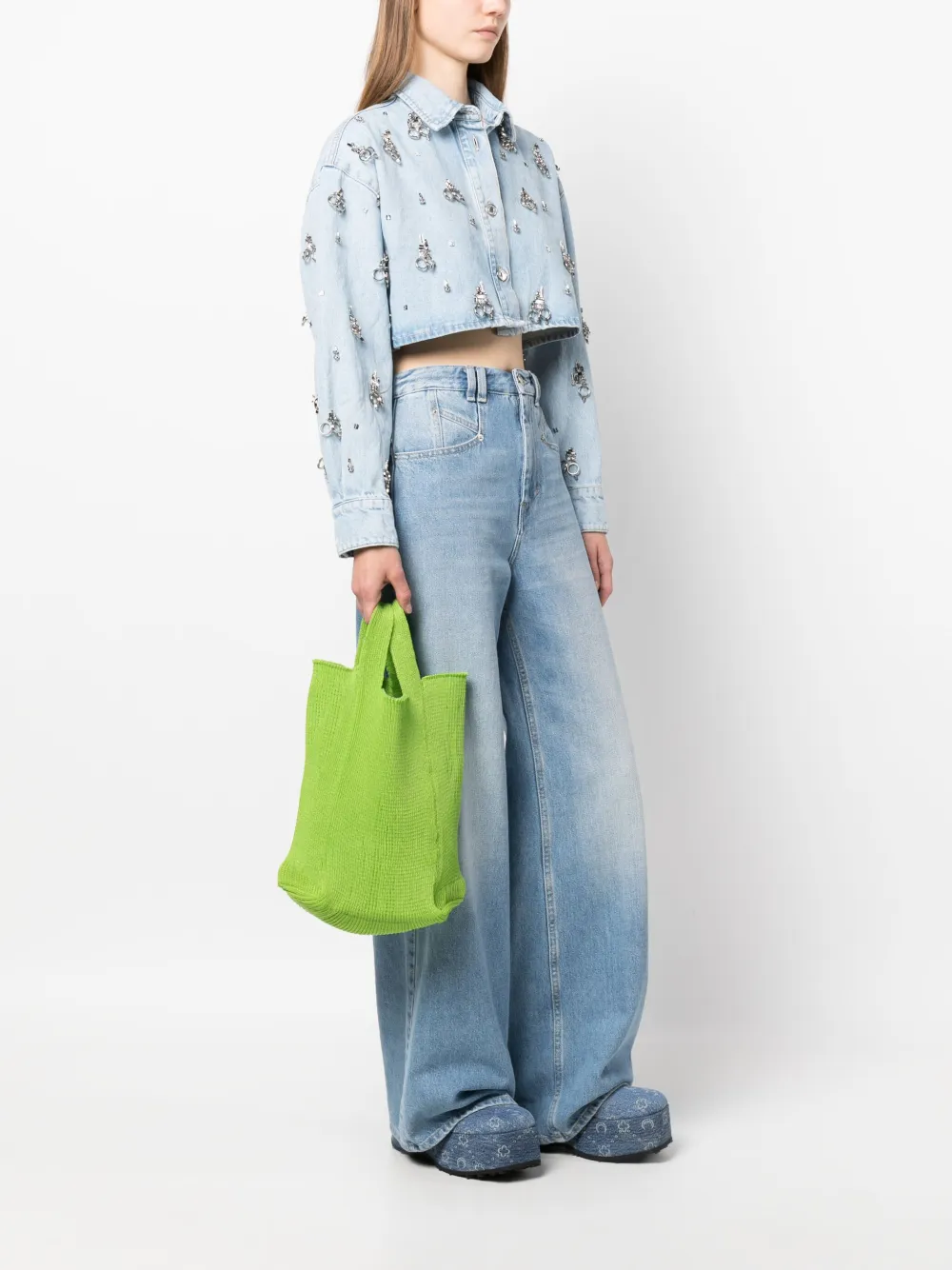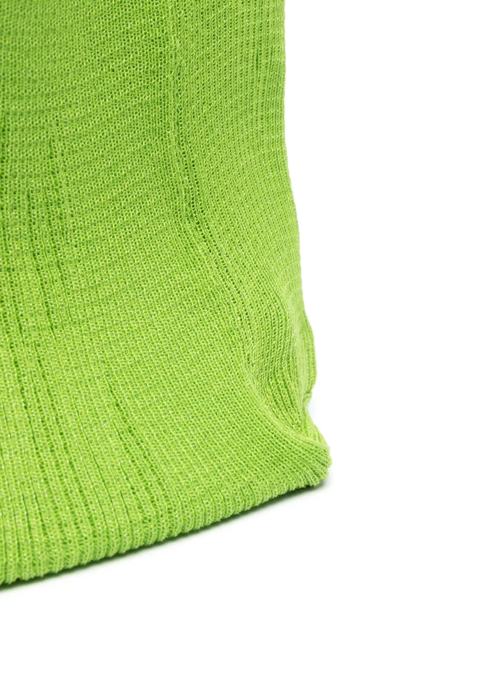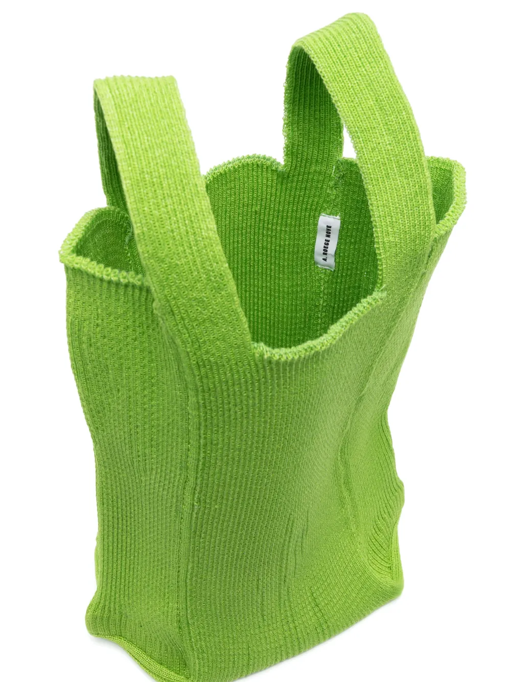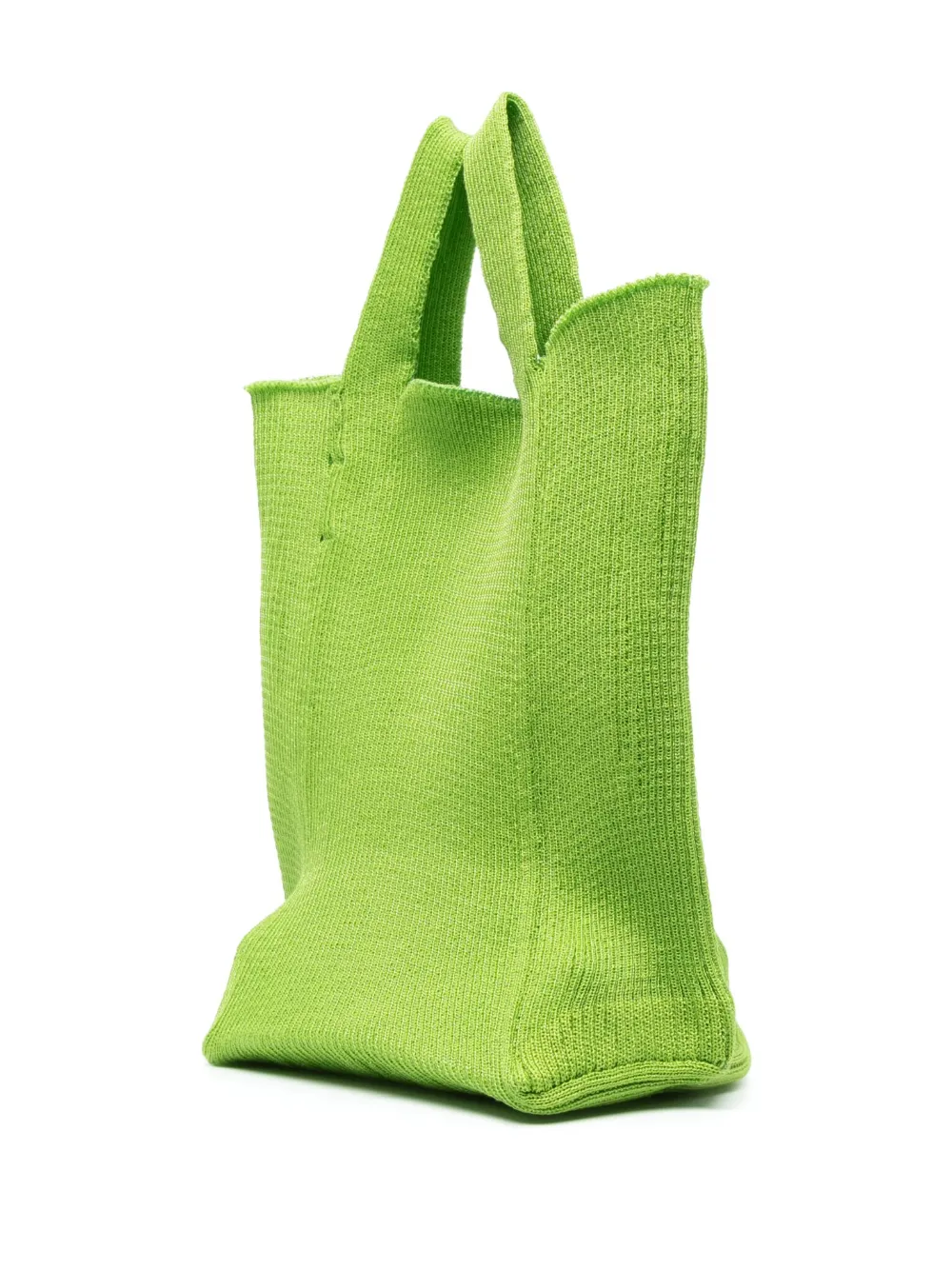 Цвет зеленого яблока, хлопок, трикотажный материал, нашивка с логотипом внутри, прямоугольная форма, дизайн с открытым верхом, две плоские верхние ручки и основное отделение.
