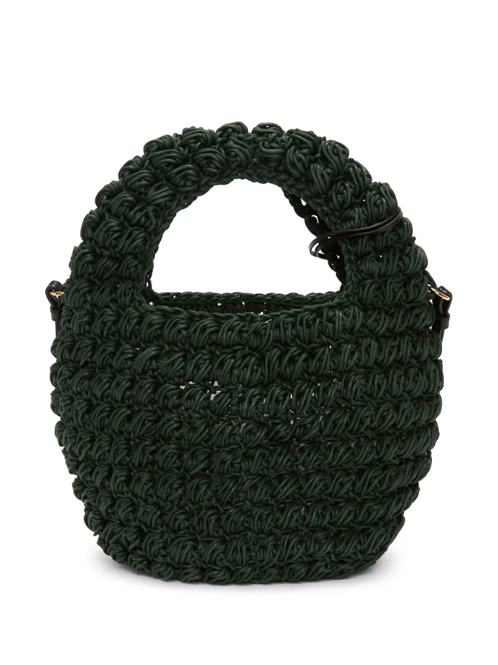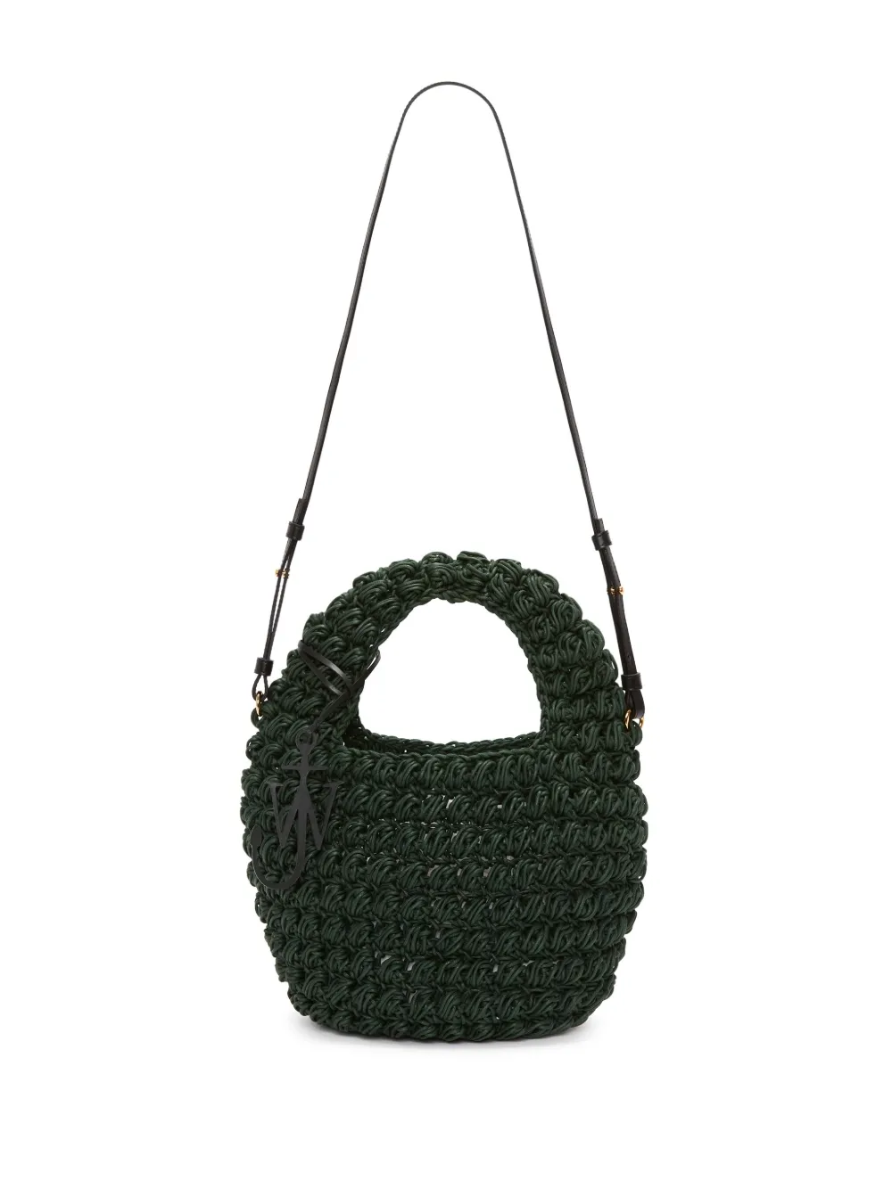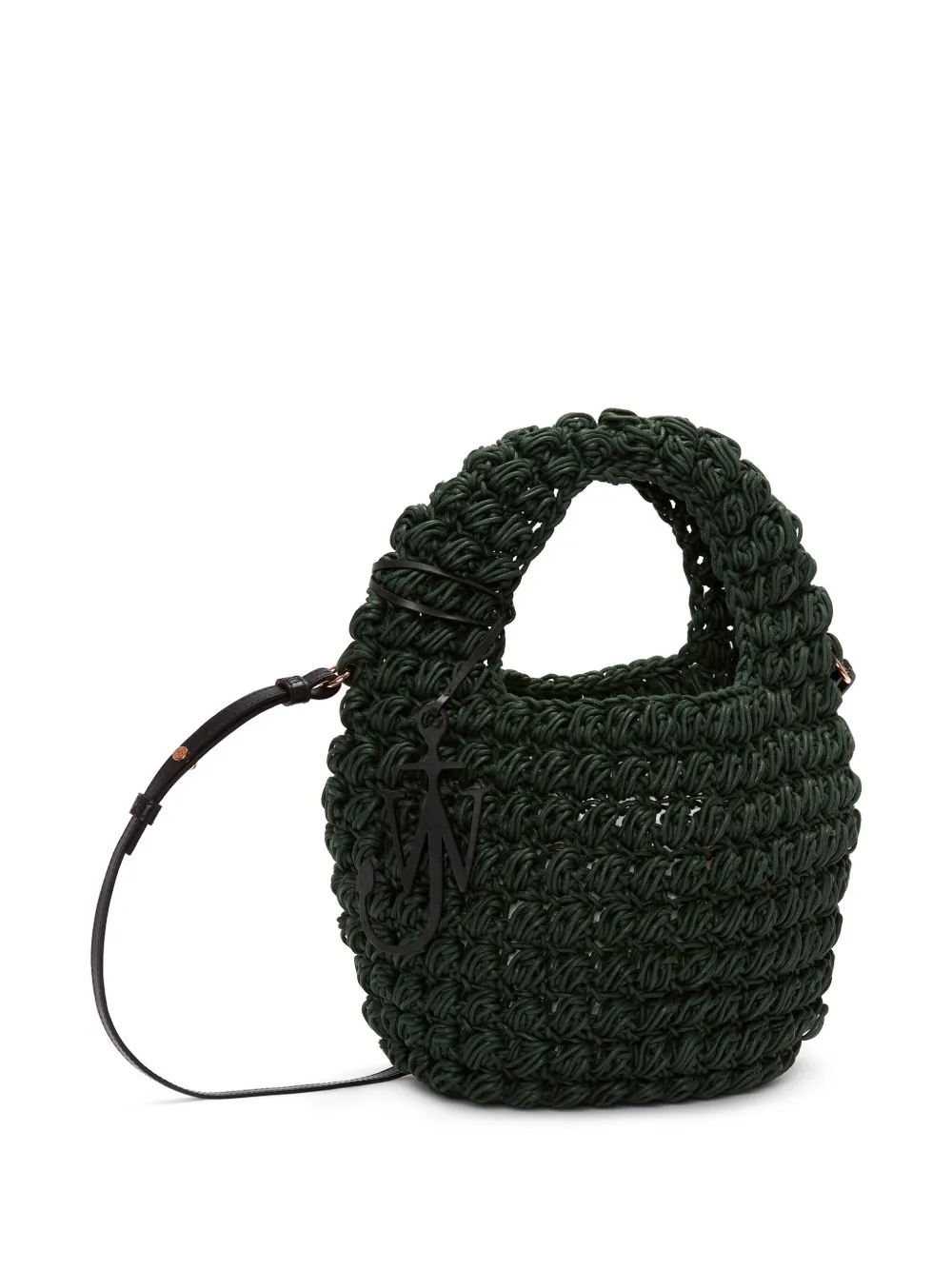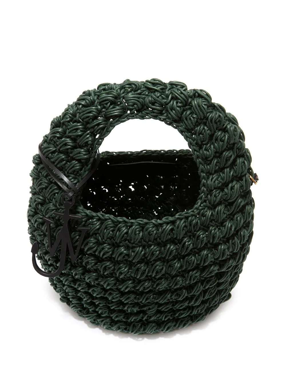 Насыщенный зеленый, хлопок, вязаный узор «попкорн», верхняя ручка, логотип с инициалами JW в виде якоря, съемный регулируемый ремень на плечо, дизайн с открытым верхом, нашивка с логотипом внутри и основное отделение.