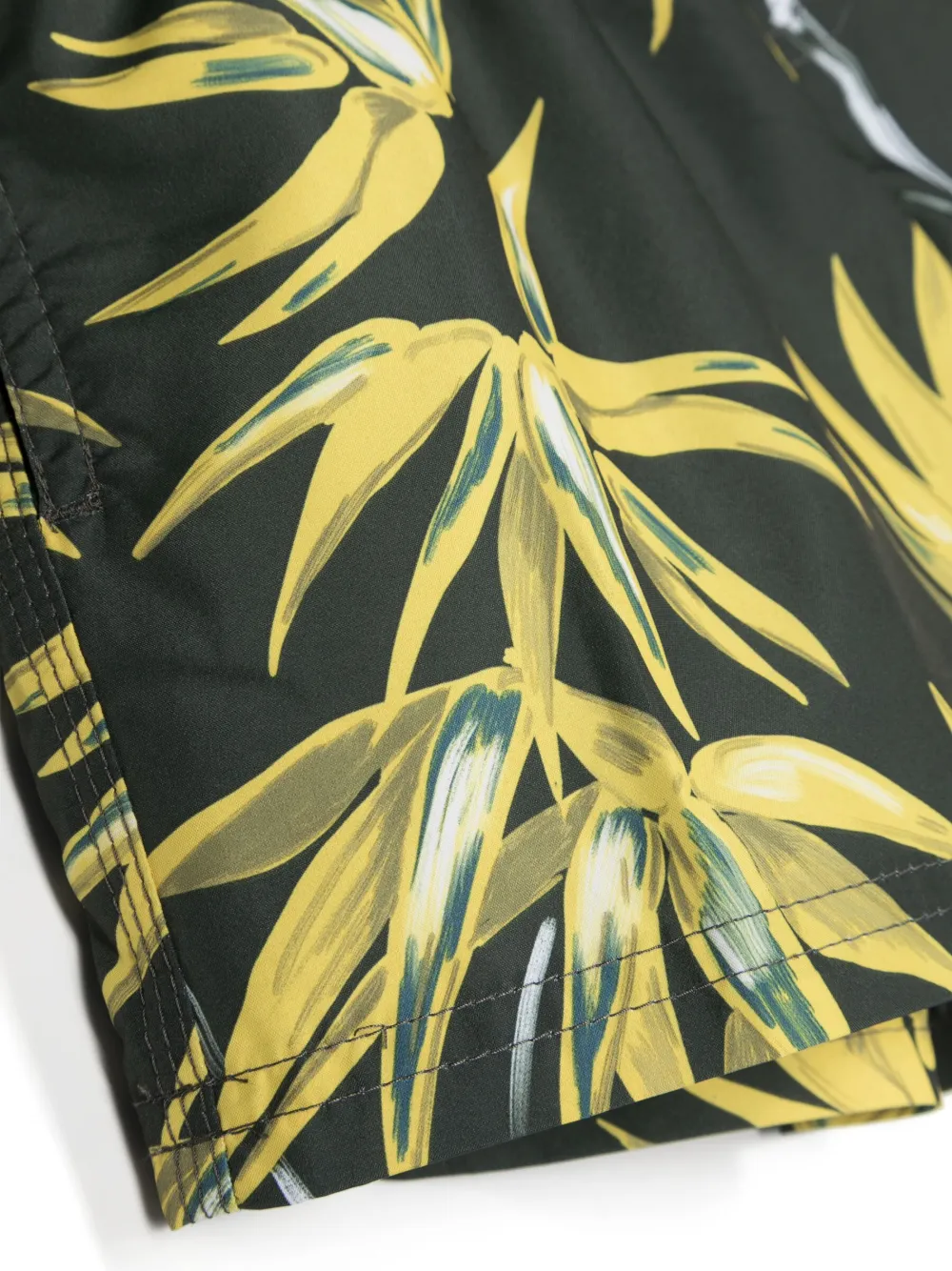 Зеленый, сплошной графичный принт, кулиска на талии, два вшитых кармана по бокам и прямой подол. Пожалуйста, примеряйте купальники и пляжные шорты только поверх собственного белья.
