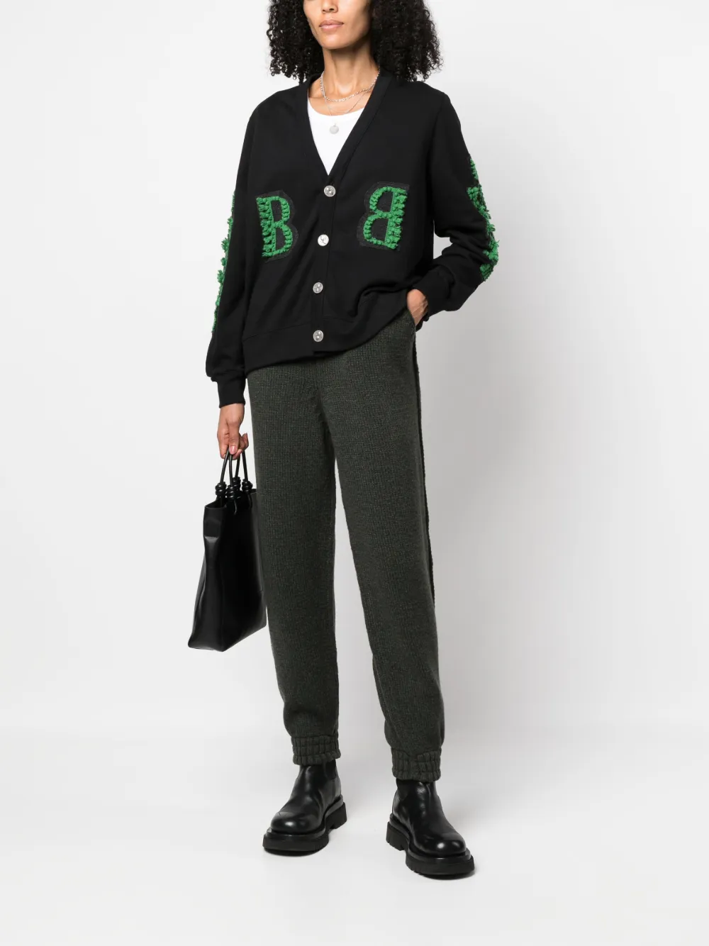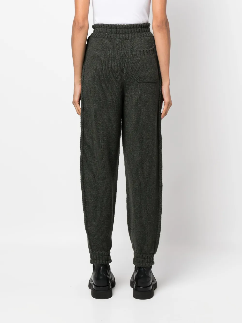 Темно-зеленый, кашемир, трикотажный материал, эластичный пояс, два вшитых кармана по бокам, эластичные манжеты и карман на пуговице сзади.