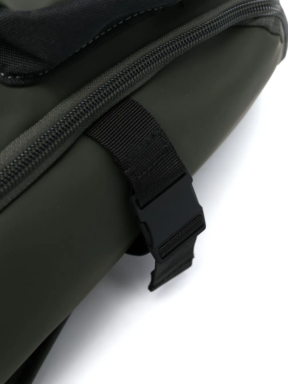 Темно-зеленый, черный, водонепроницаемый материал, металл с покрытием, застежка на молнии, застежка на пряжке и ремешке, два регулируемых ремня на плечо, основное отделение, внутреннее отделение для ноутбука и передние карманы на молнии. Узнать больше о том, какие товары получают отметку «Ответственный выбор», можно из материала «Как мы оцениваем экологичность и этичность».