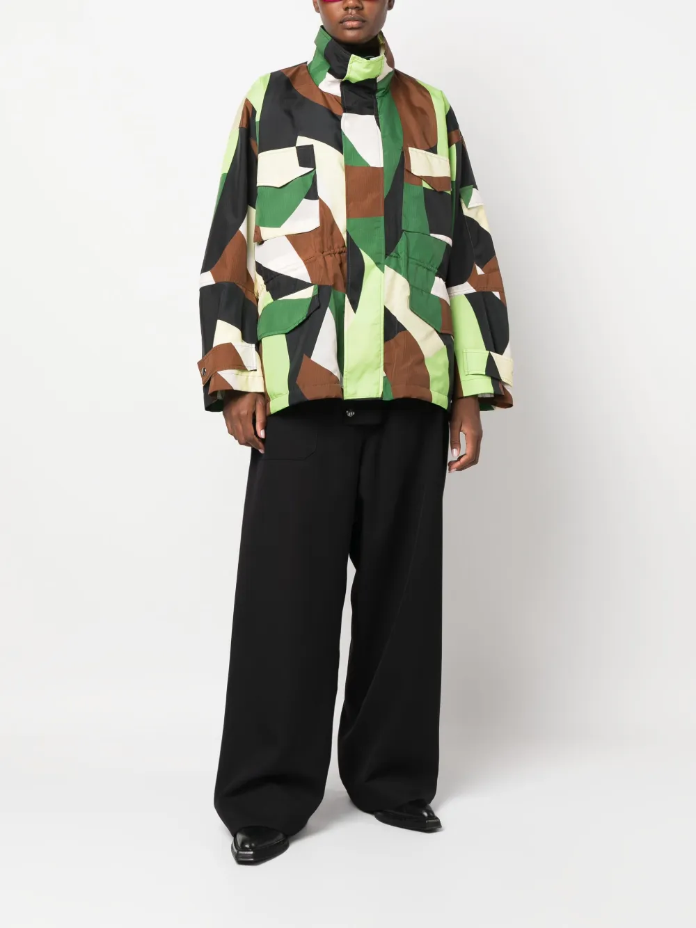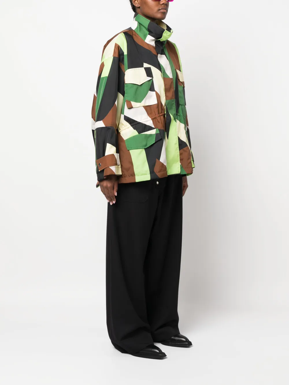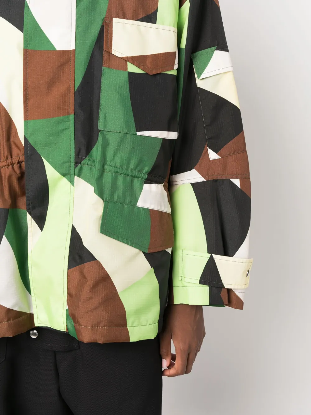 Расцветка Grass Green, разноцветный, геометричный узор, рипстоп, воротник-труба, потайная застежка спереди, два нагрудных кармана с клапанами, приспущенные плечи, длинные рукава, карман с клапаном на рукаве, манжеты с застежкой на кнопки и закругленный подол сзади.