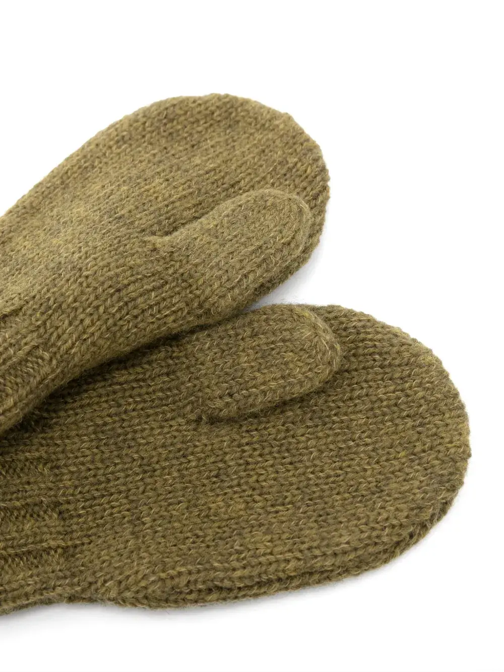 Хаки, шерсть, трикотажный материал, вязаные края в рубчик и кольцо на всю фалангу.