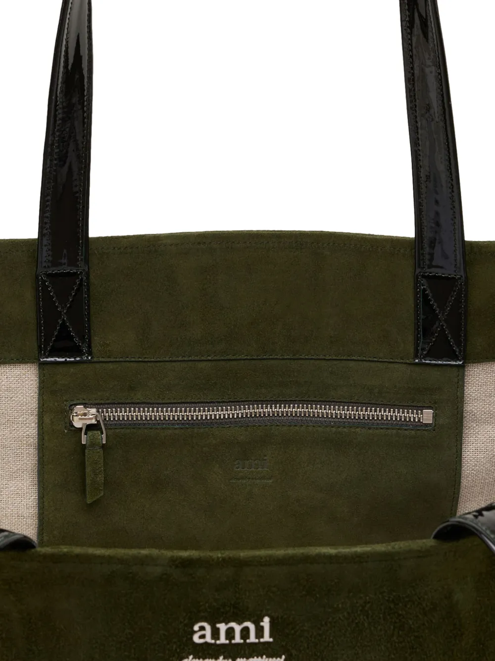 Сумка-тоут с логотипом и вставками AMI Paris, зеленый