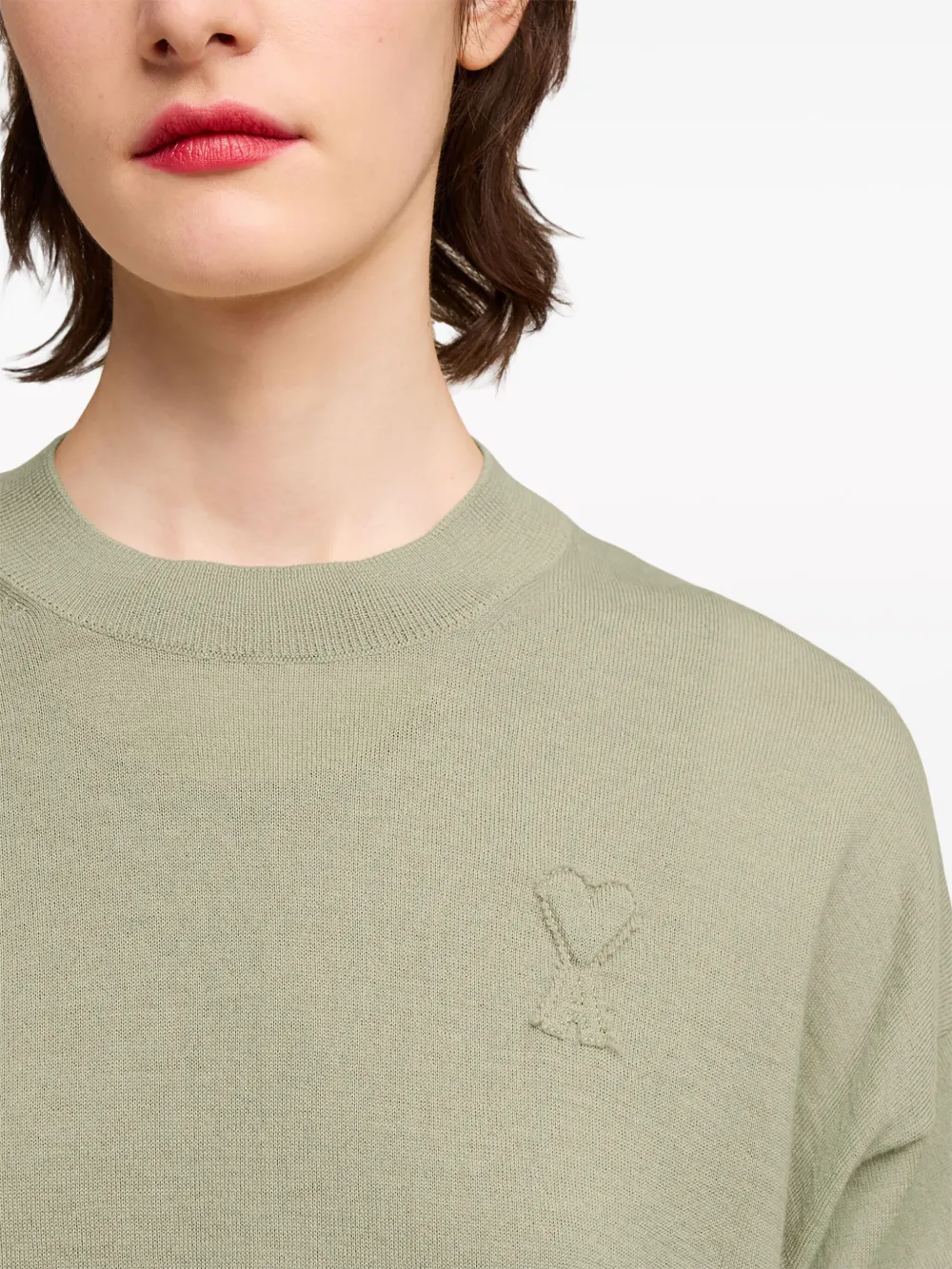 Шерстяной джемпер с монограммой Ami de Coeur AMI Paris, зеленый