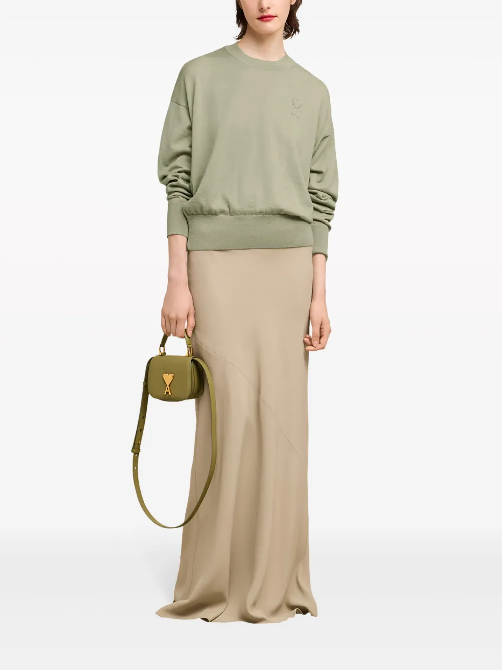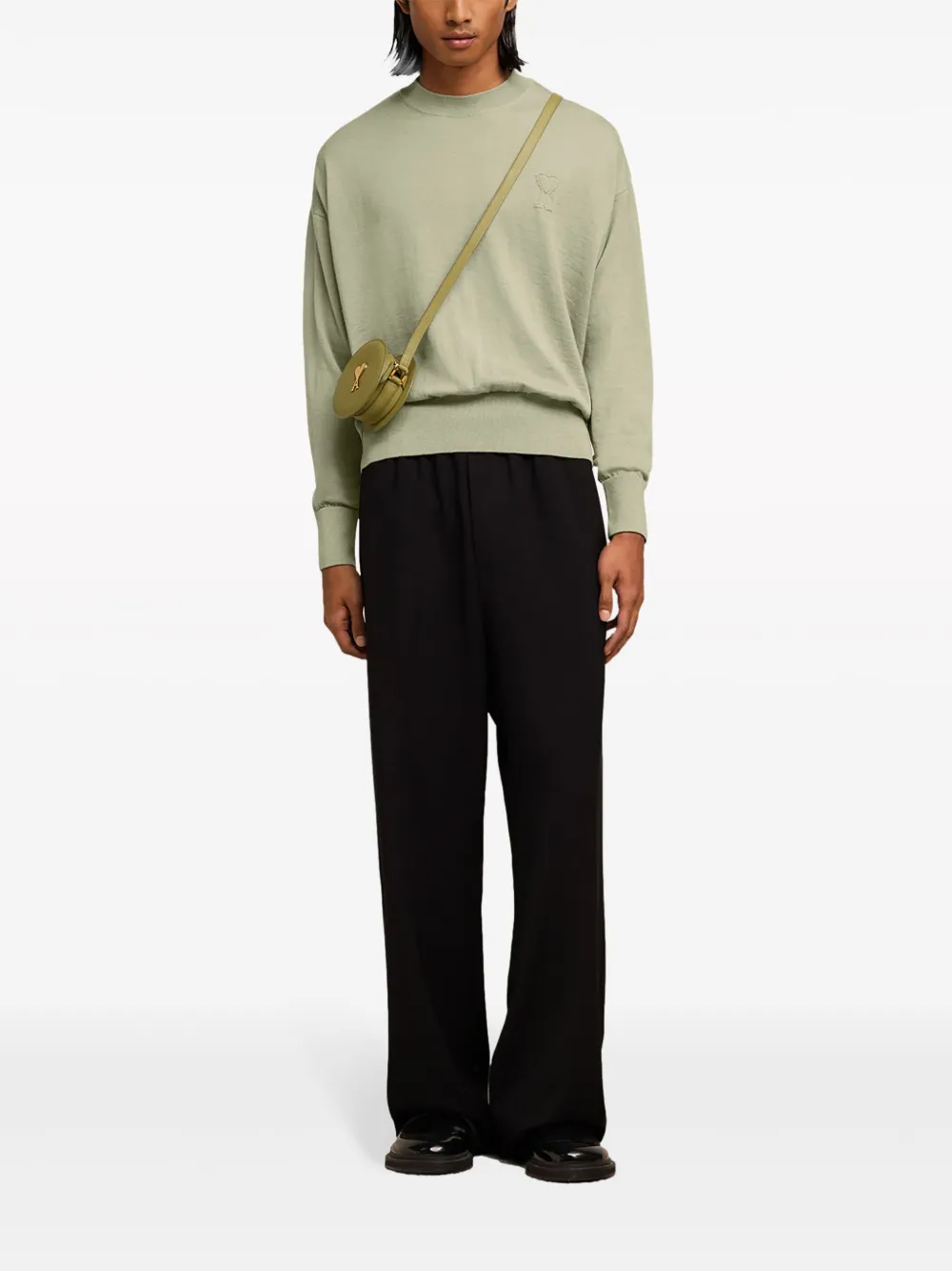 Шерстяной джемпер с монограммой Ami de Coeur AMI Paris, зеленый 22 843₽
