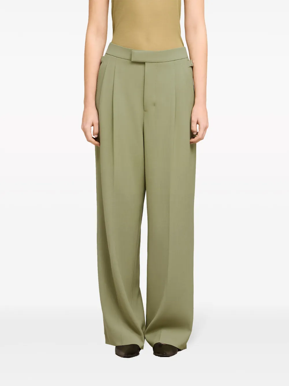 Прямые брюки со складками AMI Paris, зеленый