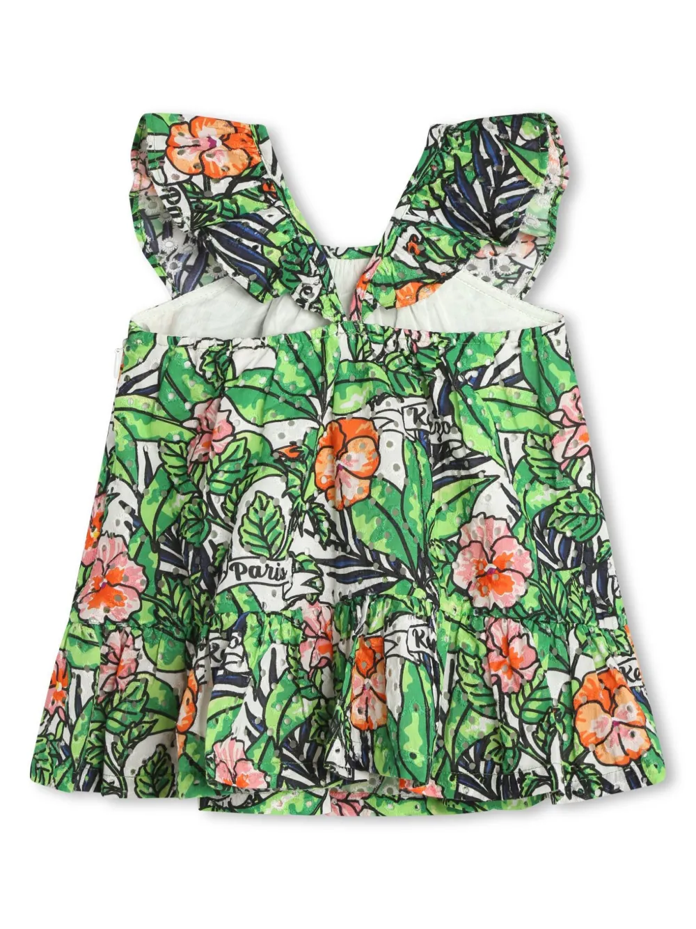 Расклешенное платье с оборками Kenzo Kids, зеленый