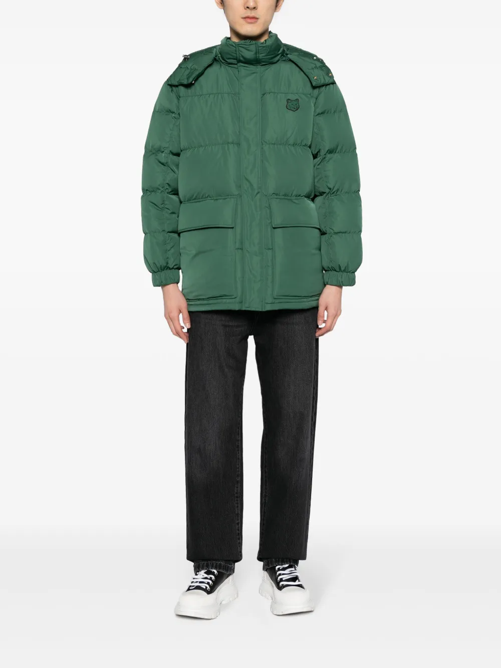 Пуховик с вышитым логотипом Maison Kitsuné, зеленый