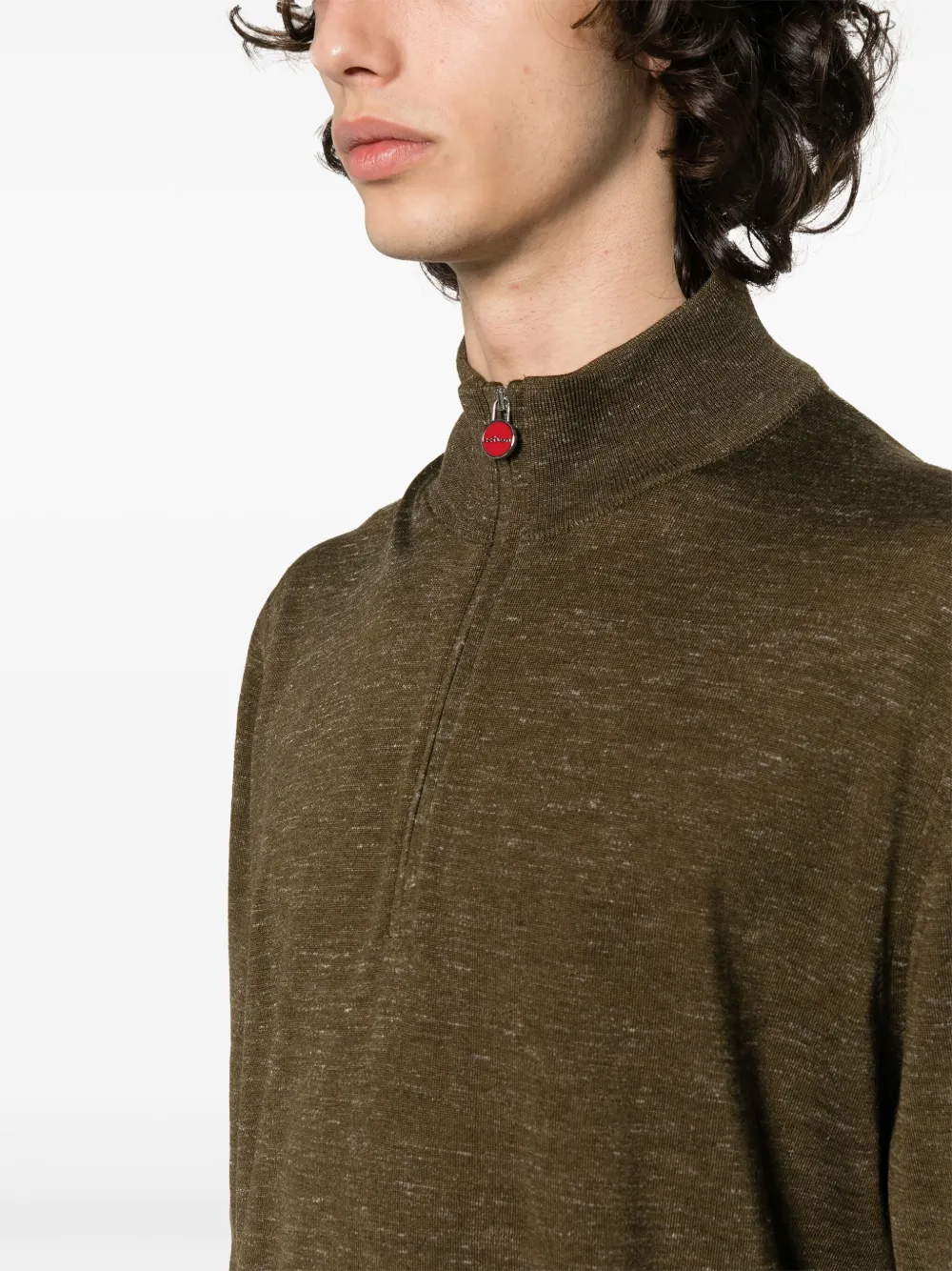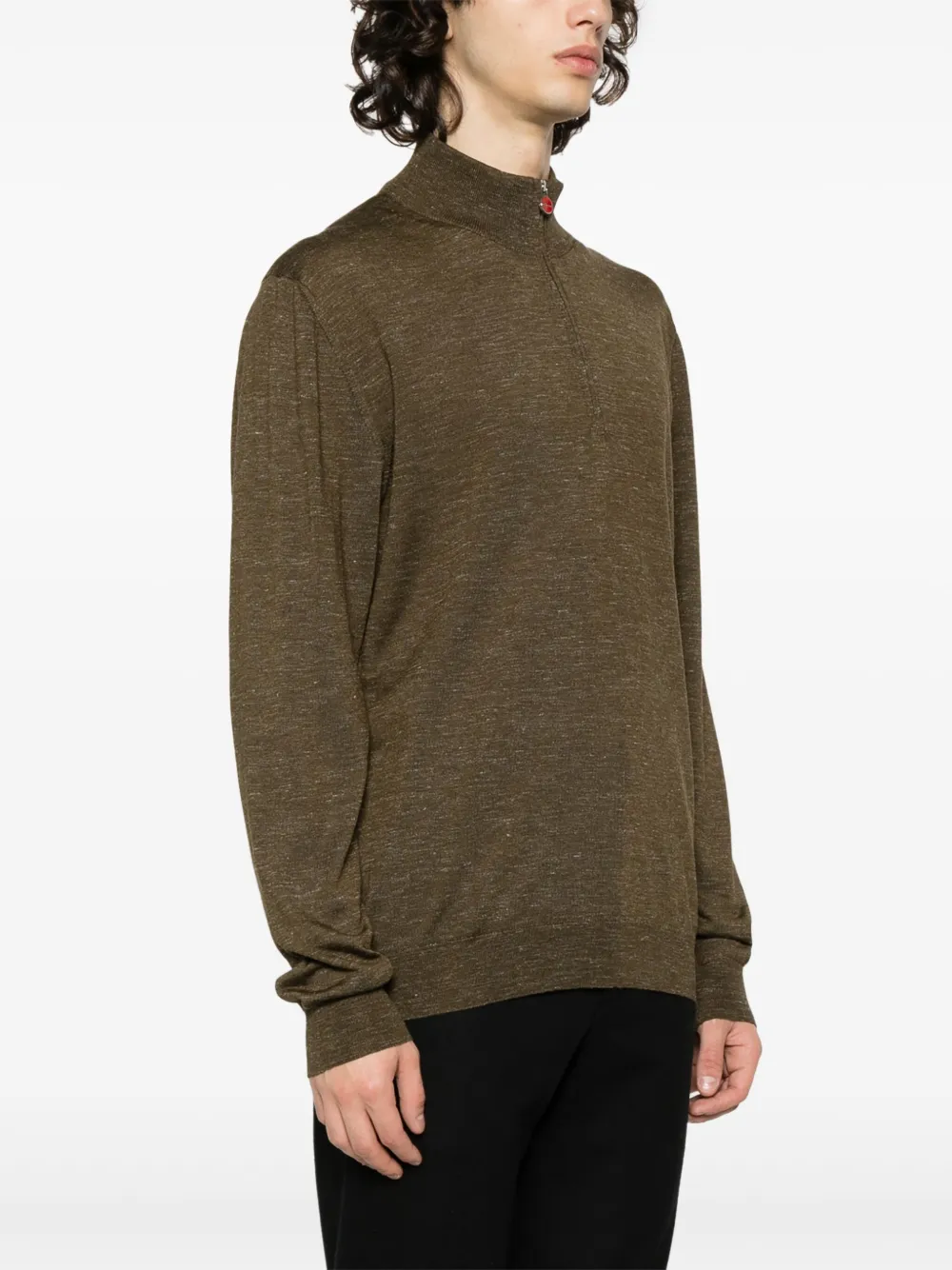 Меланжевый джемпер с высоким воротником Kiton, зеленый