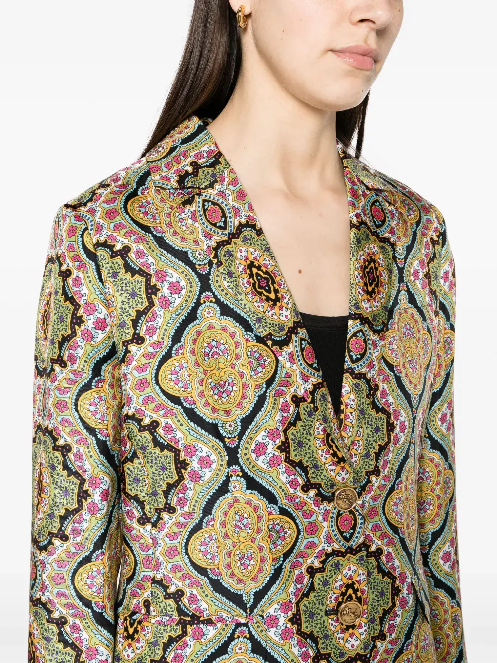 Шелковый блейзер с цветочным принтом ETRO, зеленый