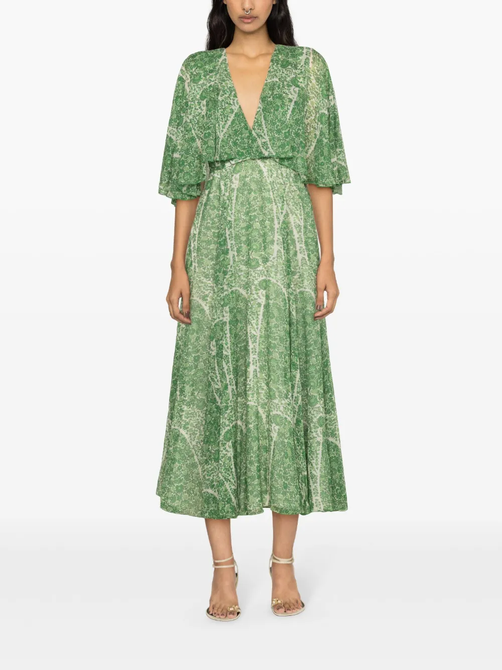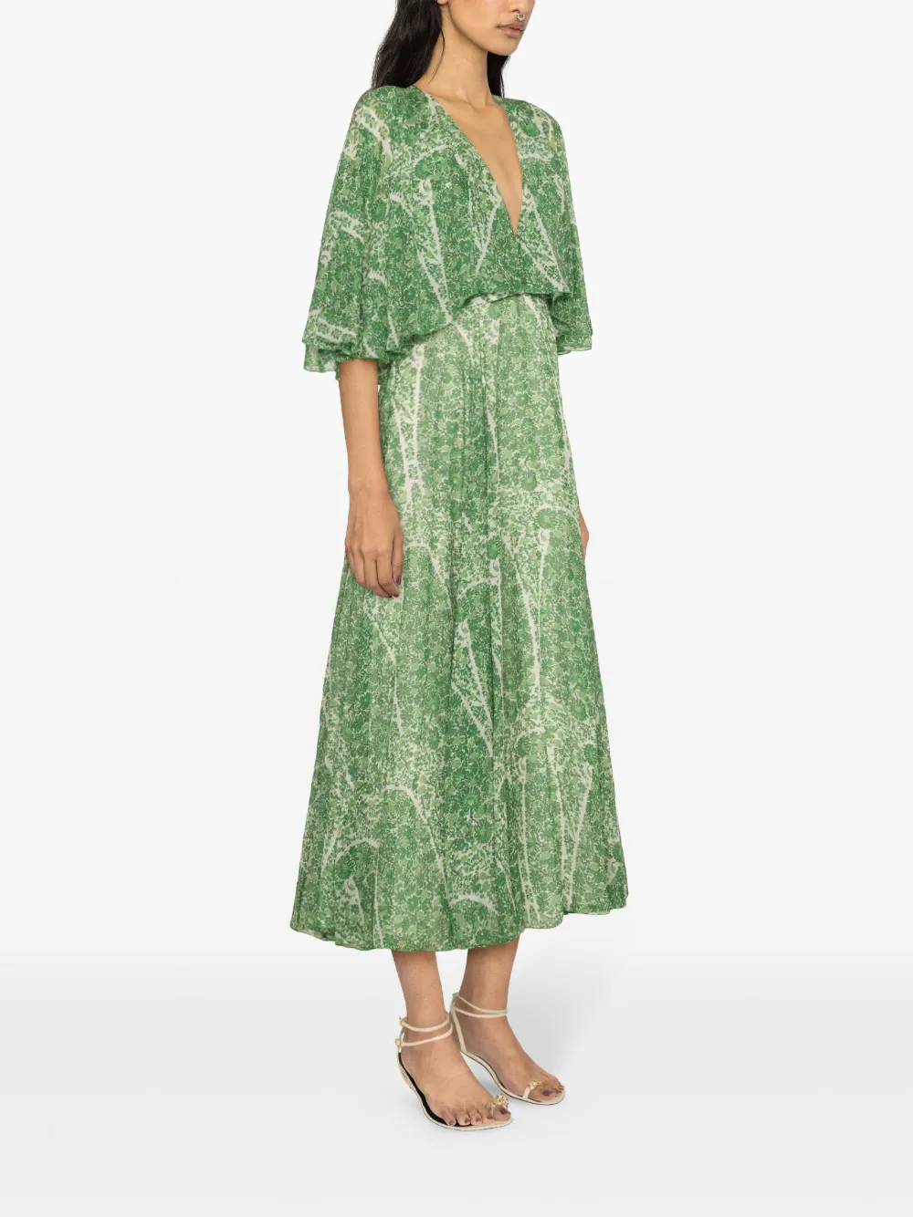 Шелковое платье миди с принтом Giambattista Valli, зеленый