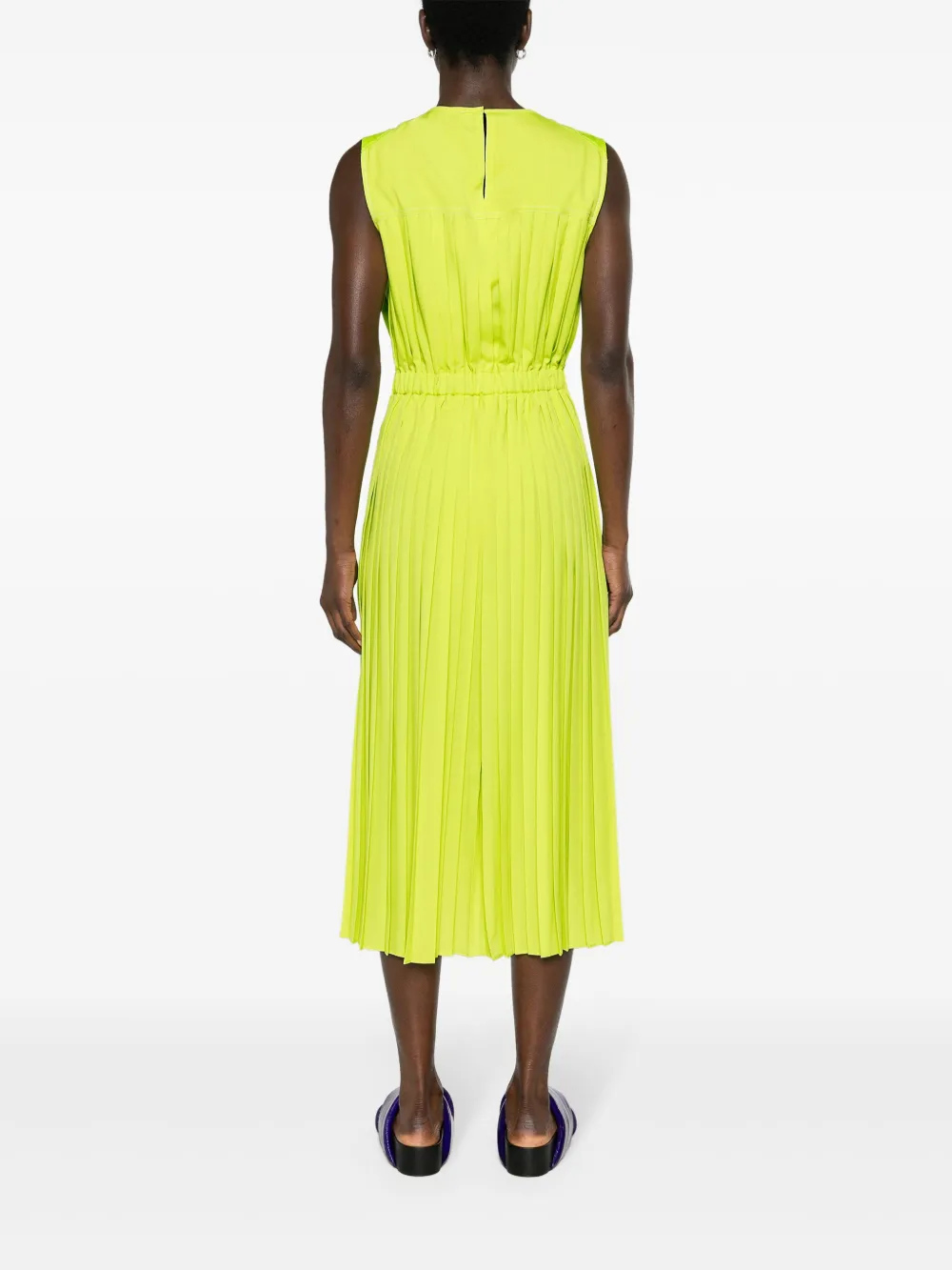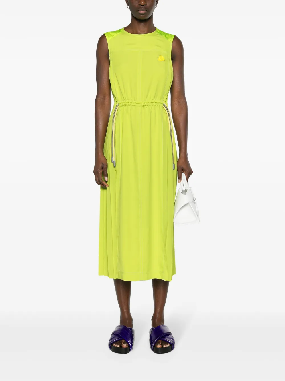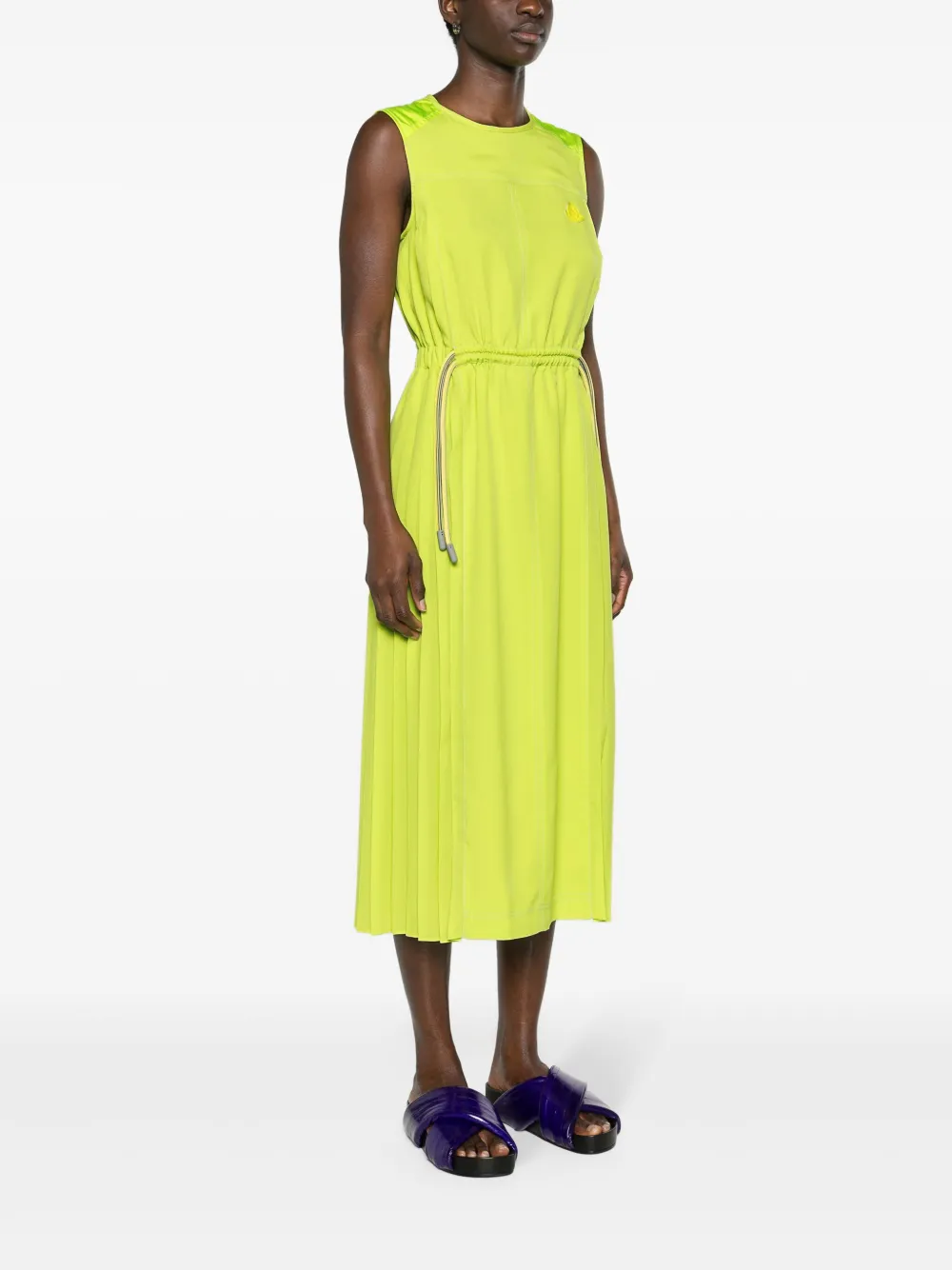 Плиссированное платье миди с логотипом MONCLER, зеленый