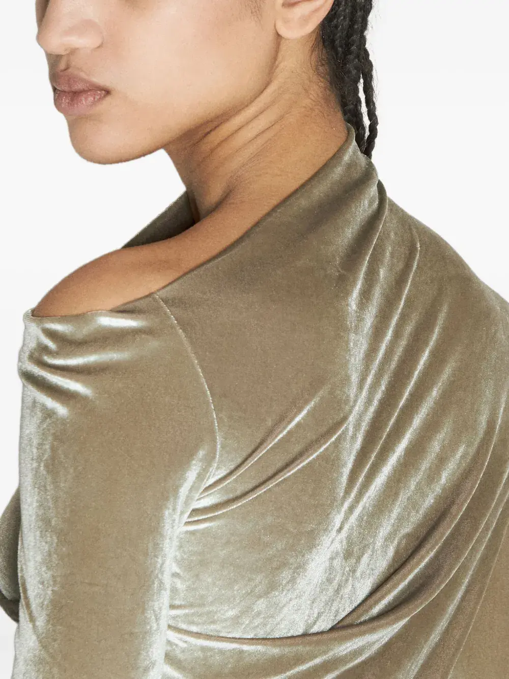 Бархатный топ с драпировкой Helmut Lang, зеленый