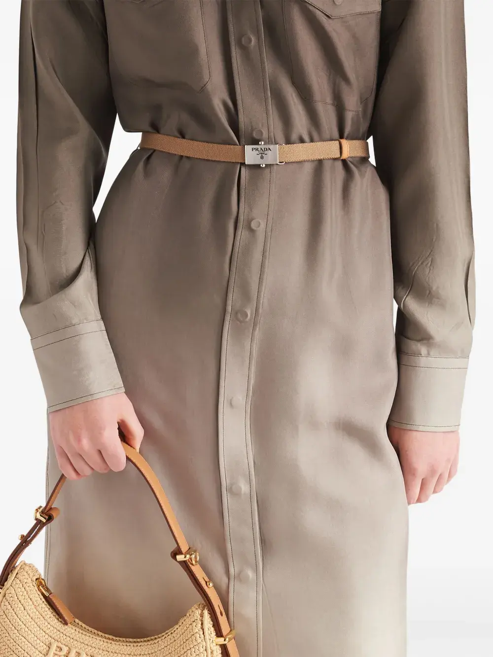 Шелковое платье-рубашка с эффектом градиента Prada, зеленый