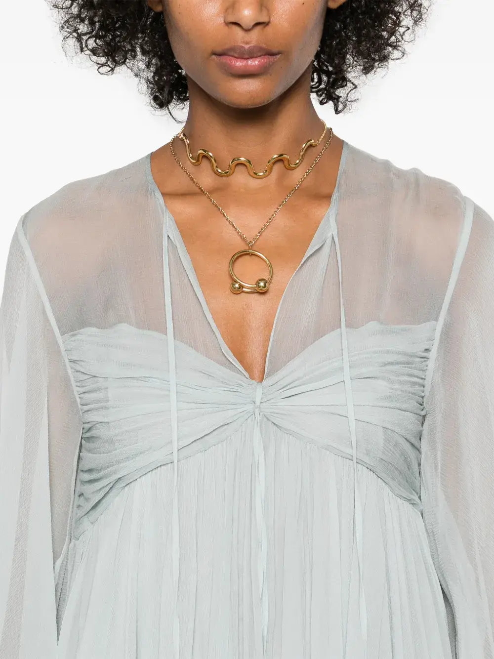 Шелковое платье мини со складками CHLOÉ, зеленый