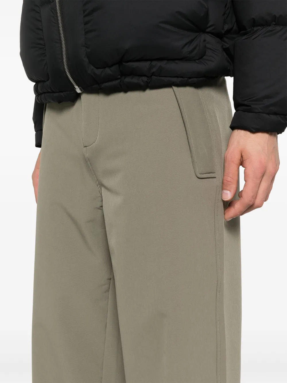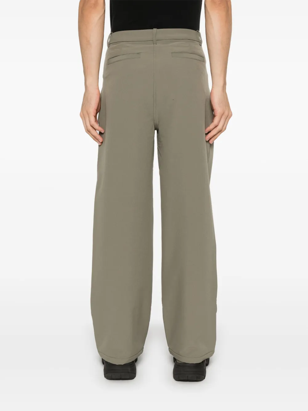 Подробнее о товаре: • зеленый • технологичная ткань • плотный внешний материал • потайная застежка на пуговицы, крючок и молнию спереди • петли для ремня • два кармана на молнии по бокам • два кармана с листочкой сзади • прямой крой • Это унисекс-модель. Обратите внимание, что для нее используется мужская размерная сетка.