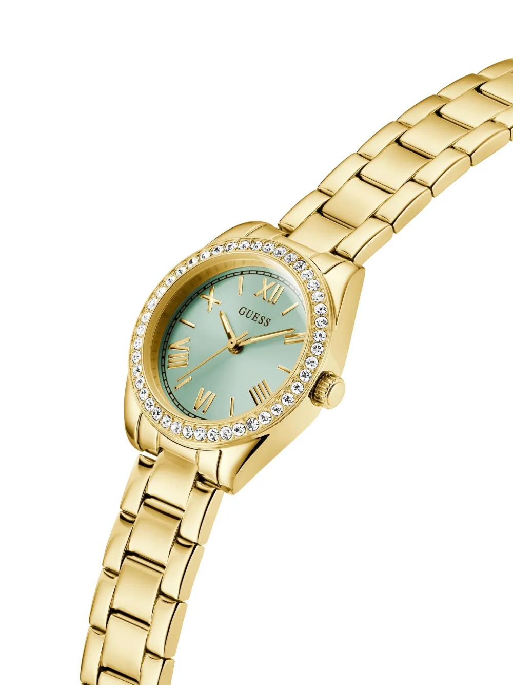 Подробнее о товаре: • 30 мм • корпус из нержавеющей стали • кварцевый механизм • круглый корпус • мятно-зеленый циферблат • римский циферблат • дополнительный циферблат с секундной стрелкой • мечевидные стрелки • секунднная стрелка с плавным ходом • завинчивающаяся заводная коронка • инкрустированный кристаллами безель • золотистый браслет из нержавеющей стали • портфельная застежка • водонепроницаемая модель