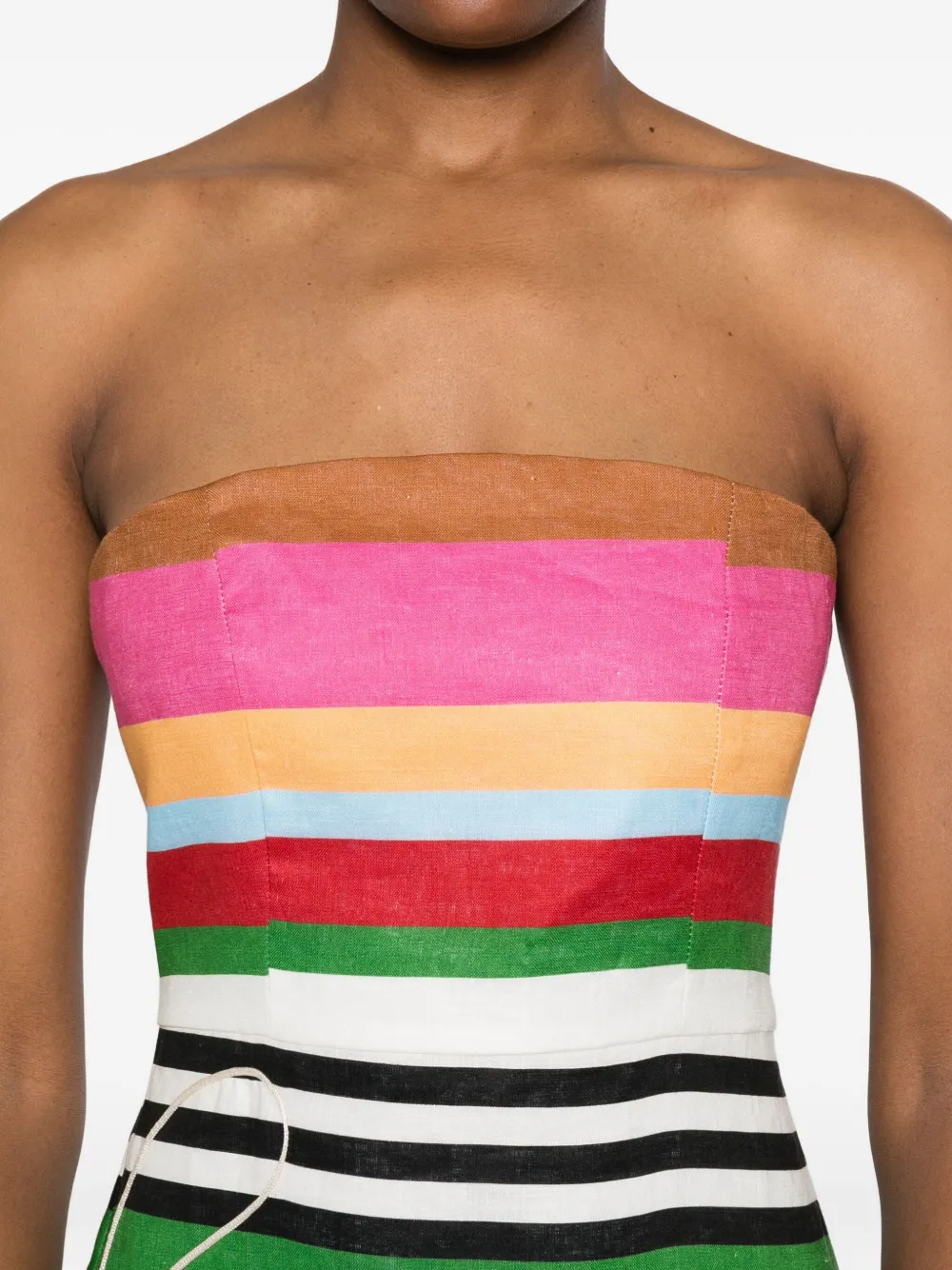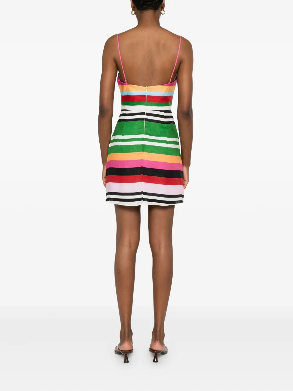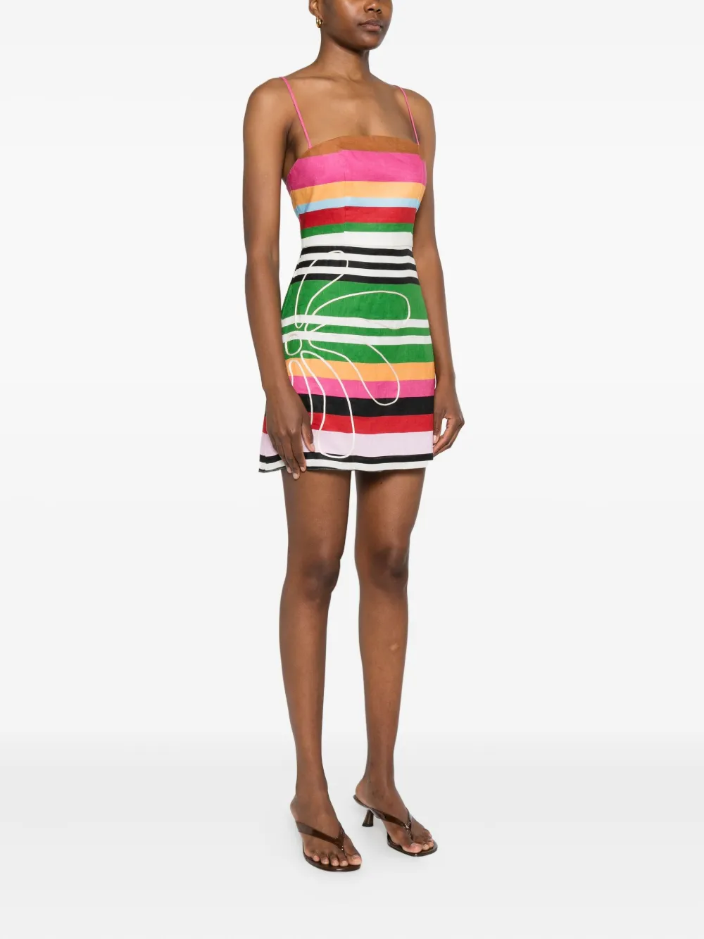 Ярко-зеленая потайная молния сзади, узор в горизонтальную полоску, квадратный вырез, тонкие бретельки