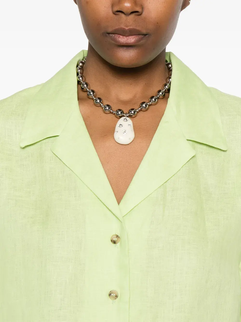 Лаймово-зеленая застежка на пуговицы спереди, короткие укороченные рукава