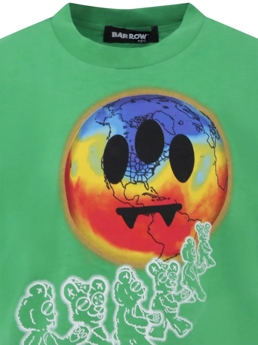 Яркий зеленый передний графический дизайн, мотив смайлика, логотип, короткие рукава