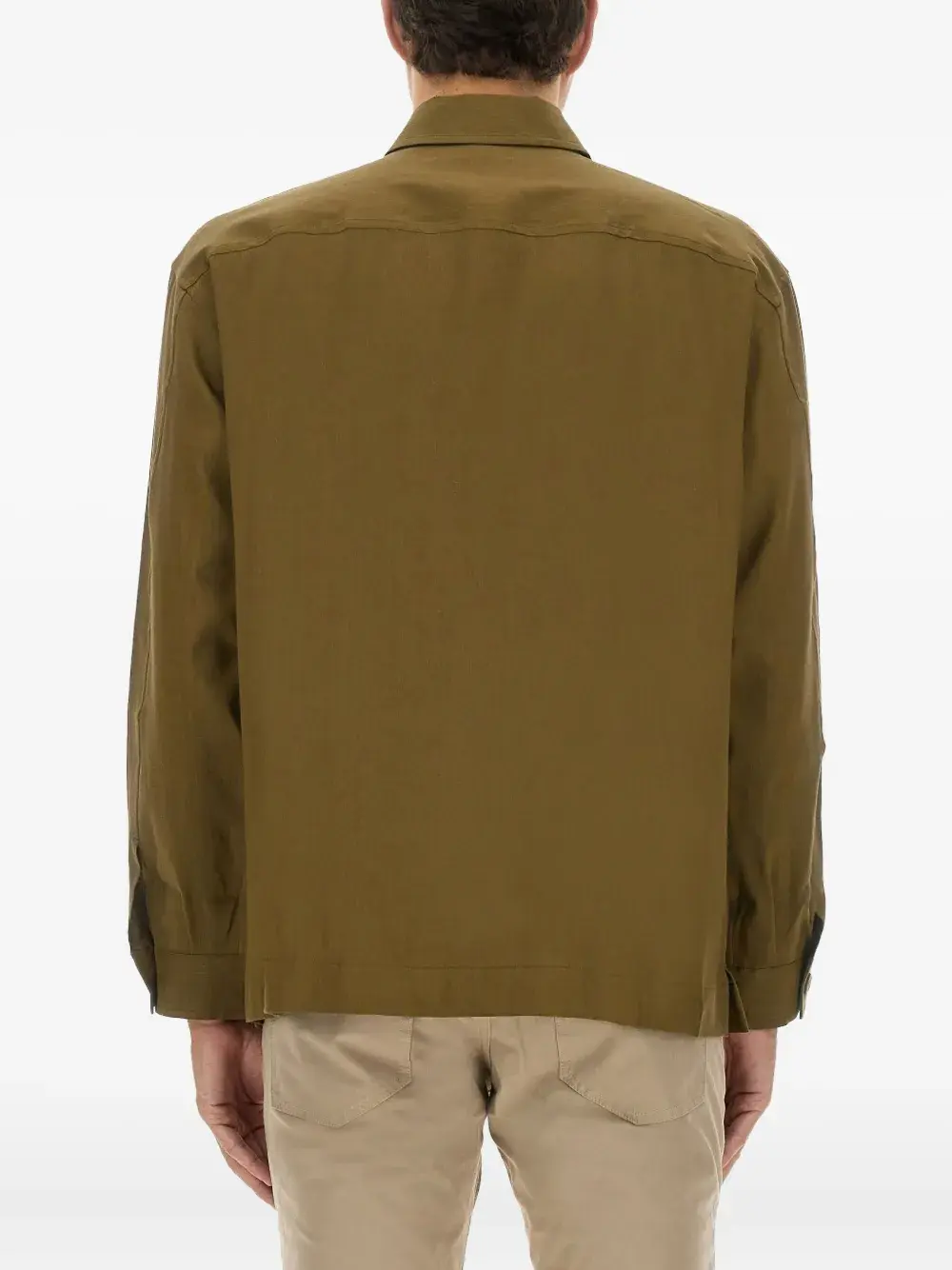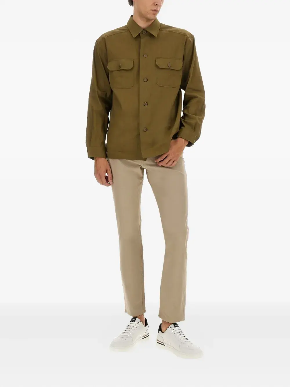 Длинные рукава цвета хаки, застежка на пуговицы, нагрудные карманы