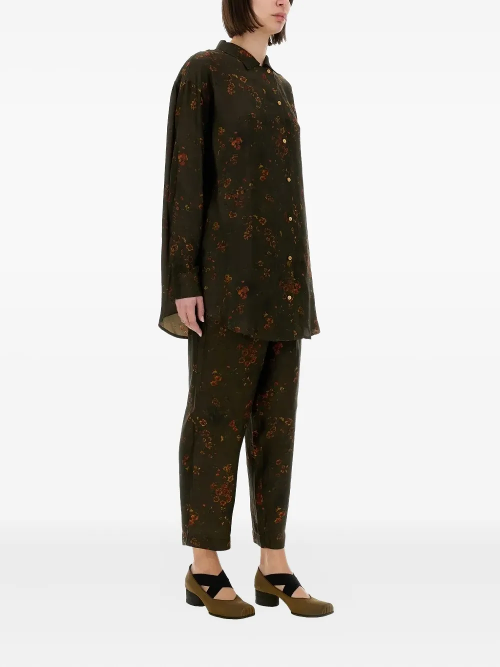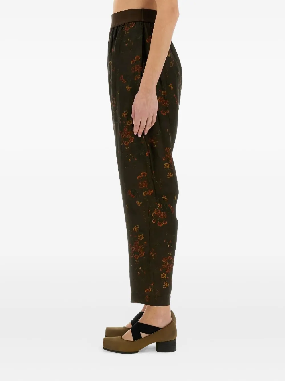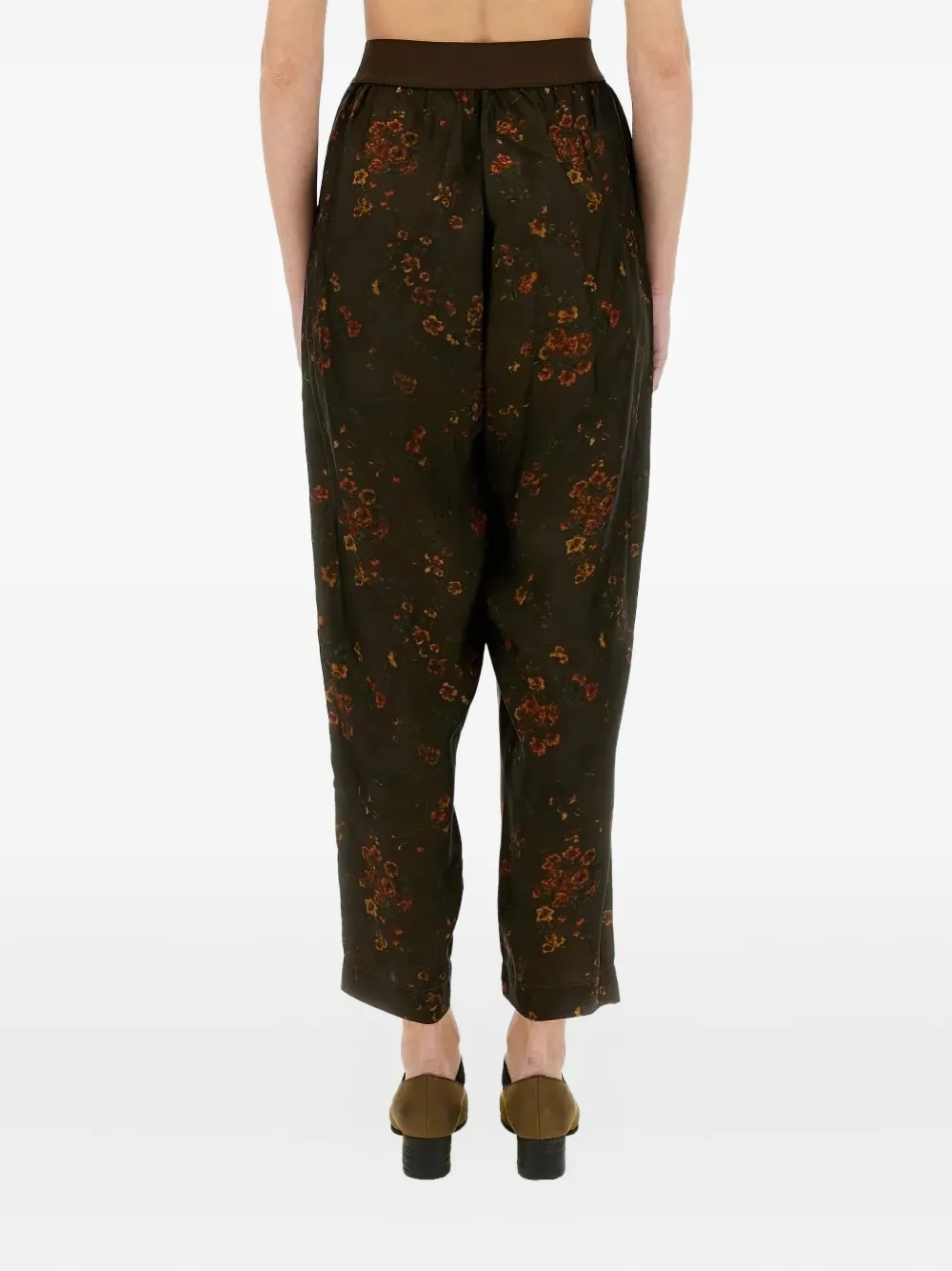 Брюки с цветочным принтом и эластичной талией Uma Wang, зеленый