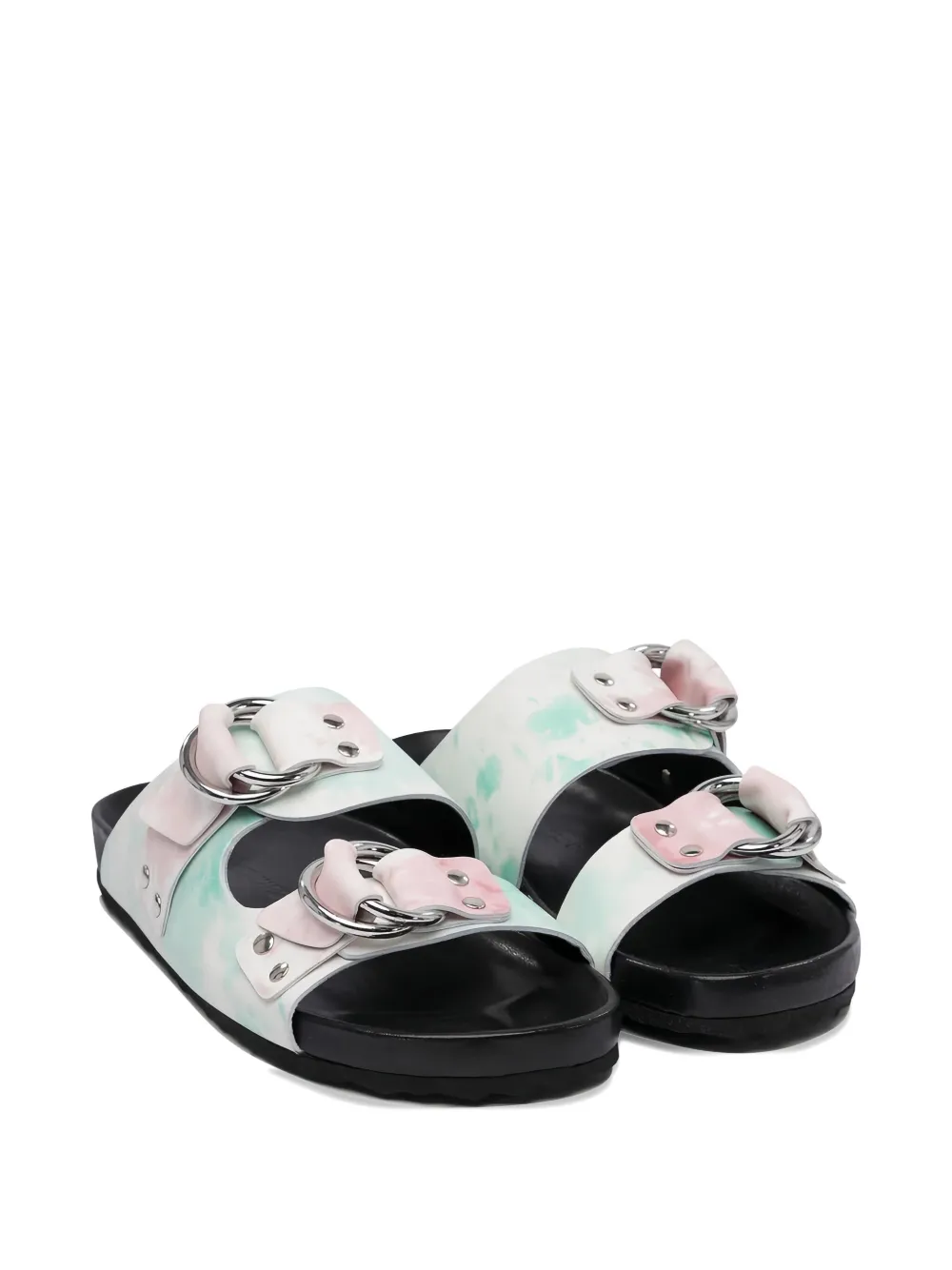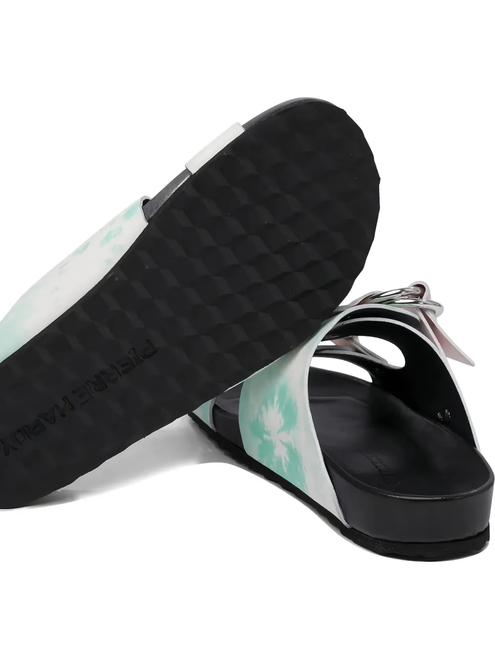 Черный узор «тай-дай», двойные пряжки на ремешках, серебристые пряжки, резиновая подошва. Обратите внимание, что для обуви Pierre Hardy французские и итальянские размеры эквивалентны.