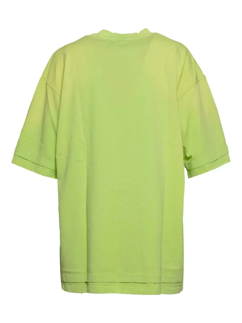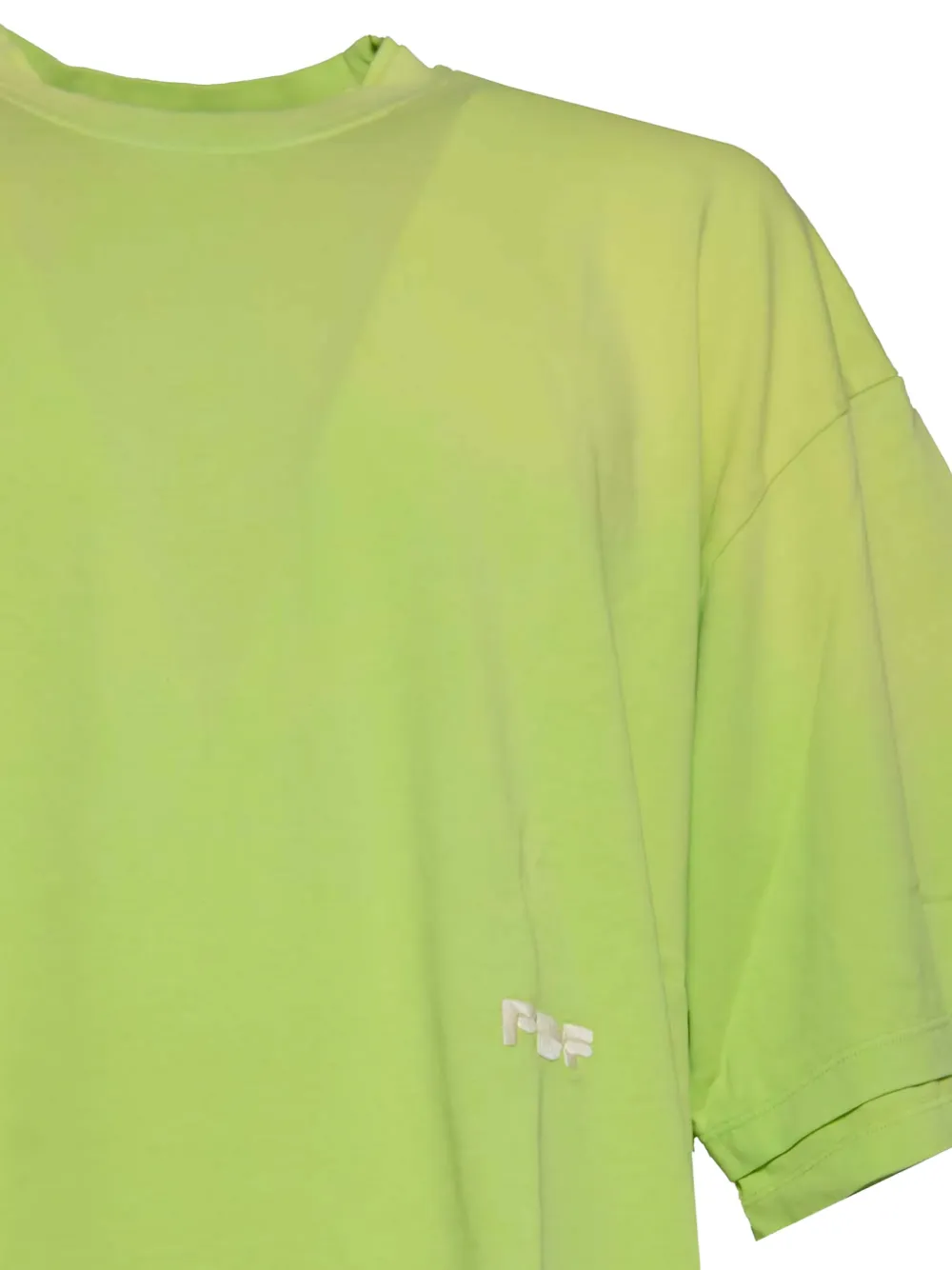 Неоново-зеленый круглый вырез горловины, короткие рукава, вышитый логотип, спущенный плечевой шов