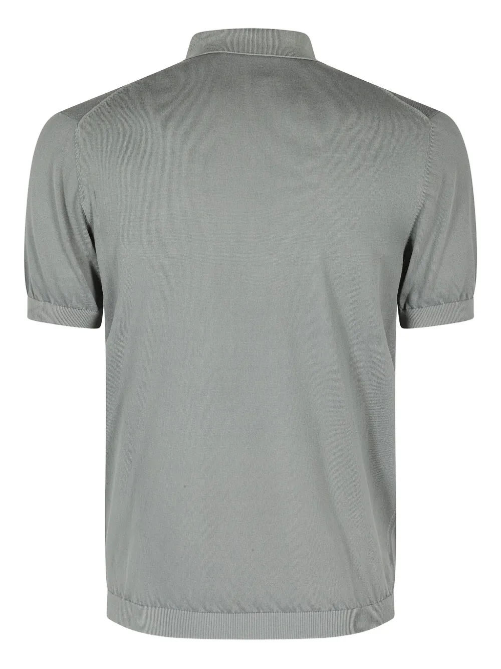 Шалфейно-зеленый, короткие рукава, планка на пуговицах, ребристый воротник, ребристый подол